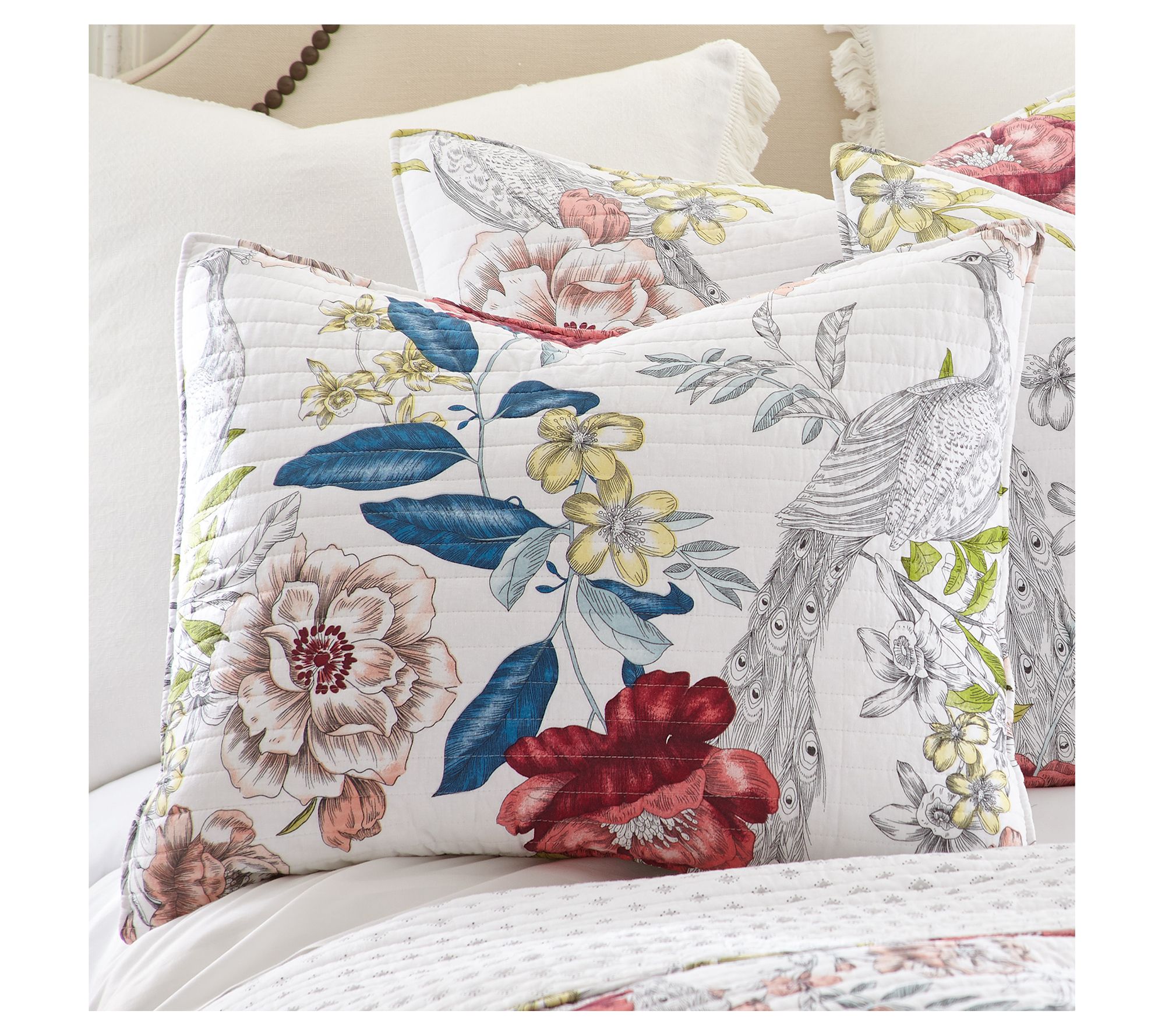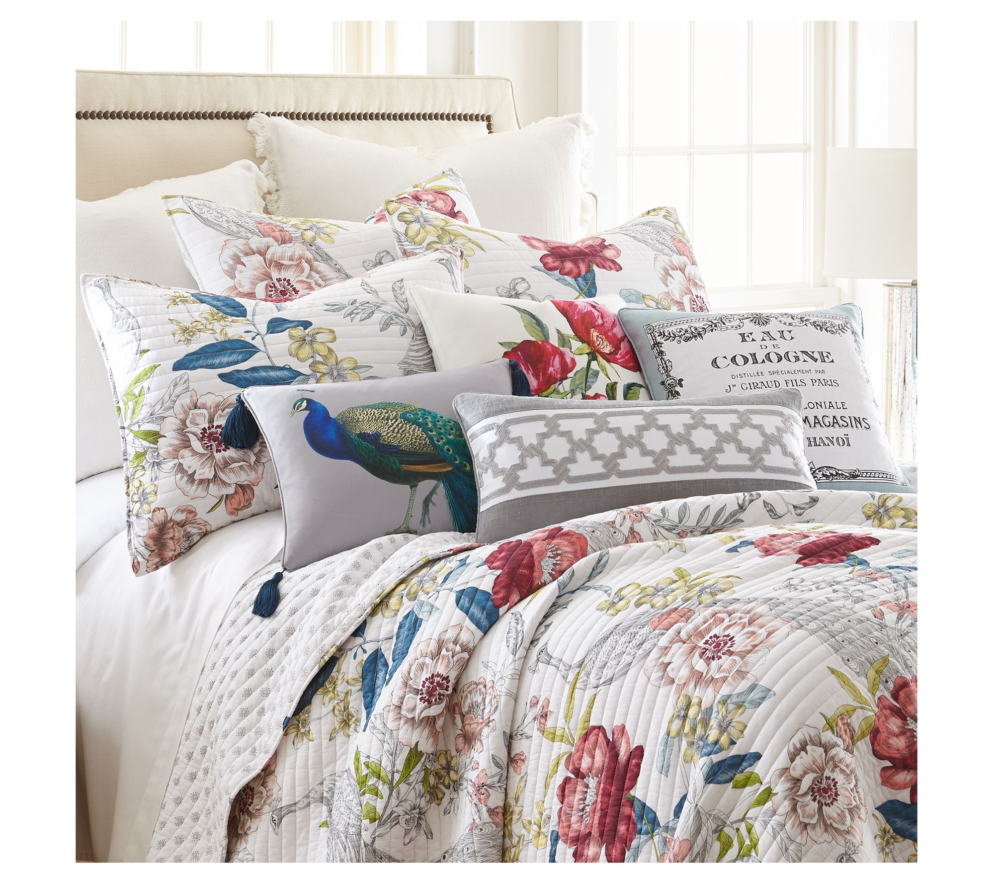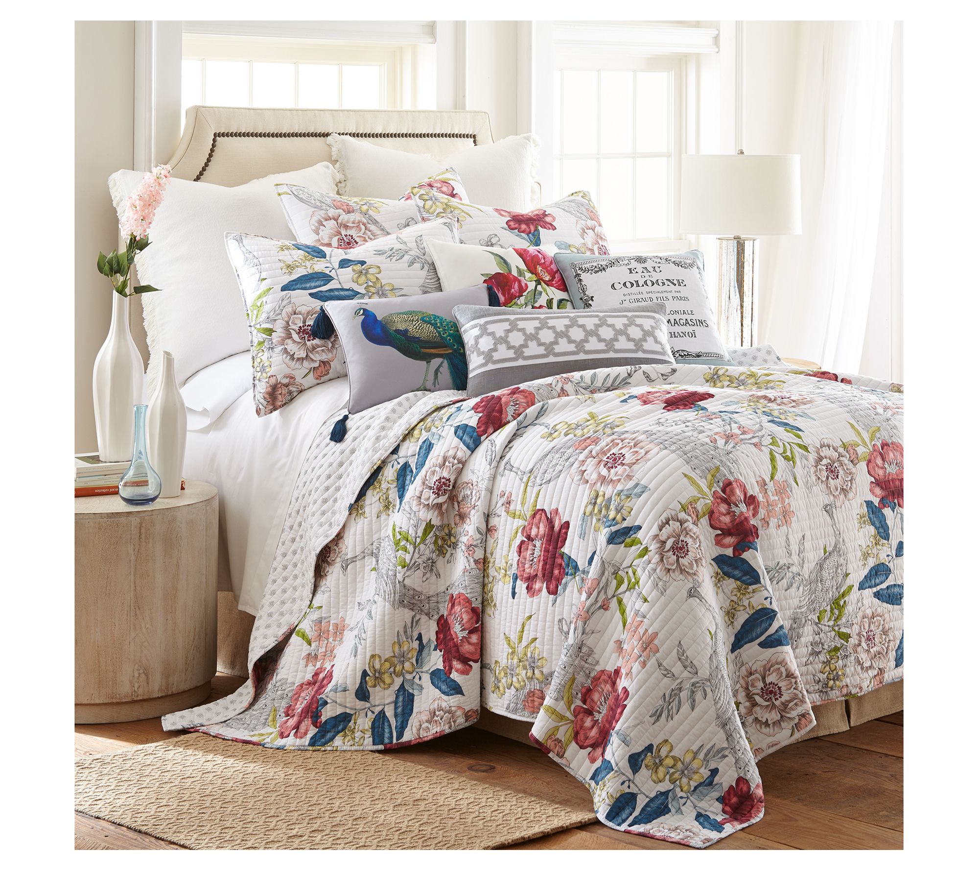 You may just feel like you've been transported to a lush and luxurious garden when you make your bed with the floral beauty of this Montecito quilt set. From Levtex Home.