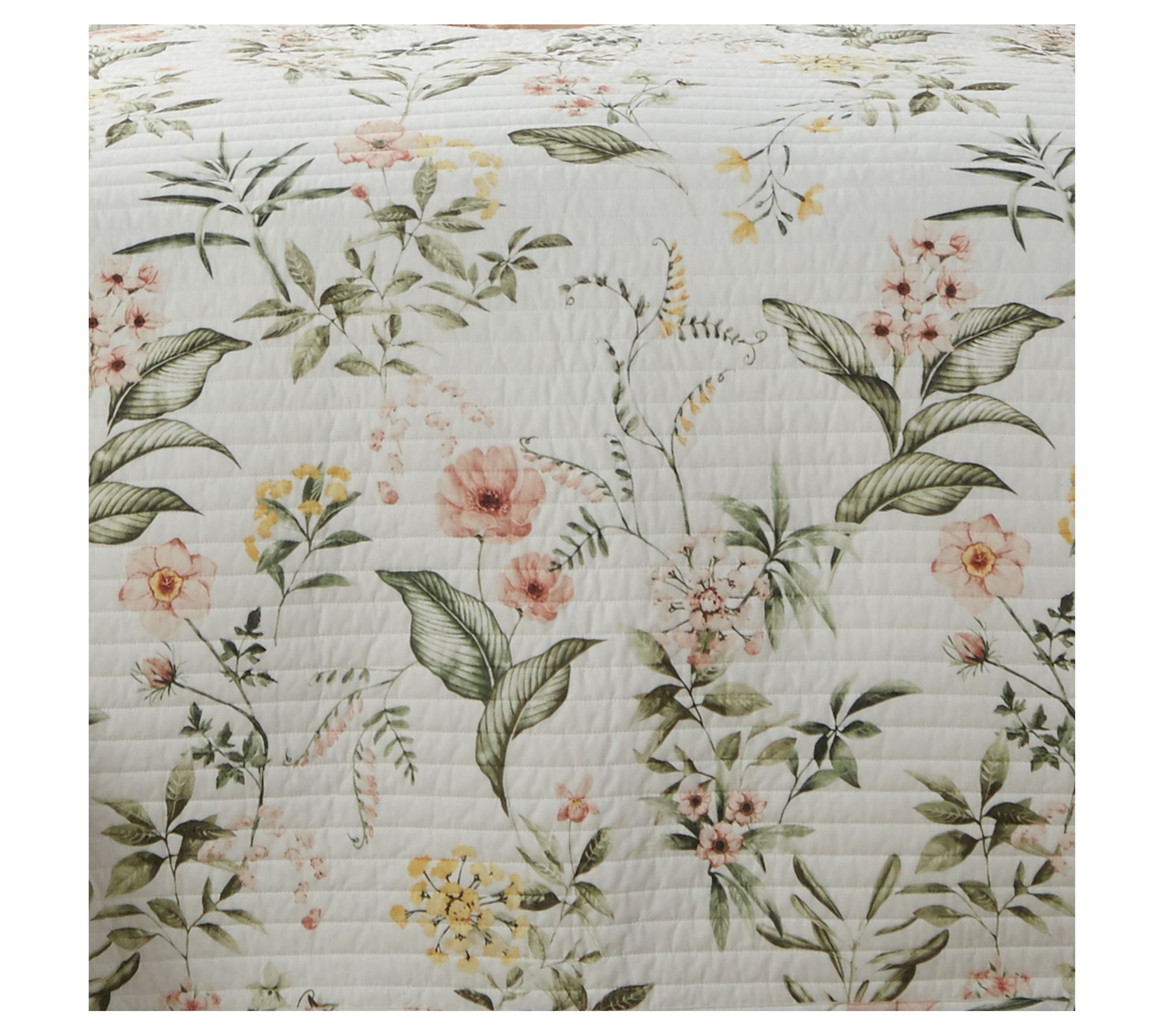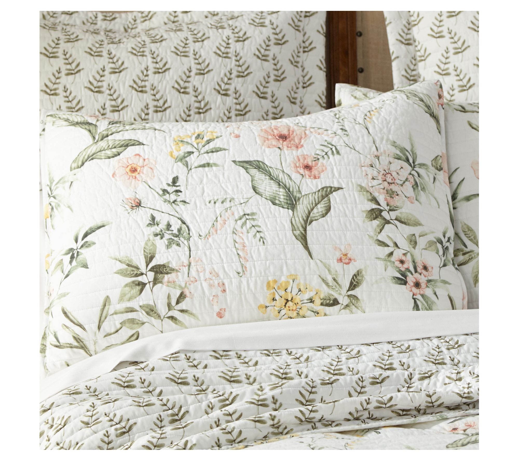 Indulge in stylish comfort with this lovely botanical quilt set boasting a reverse pattern of delicate leaves for versatile bedding options. From Levtex Home.