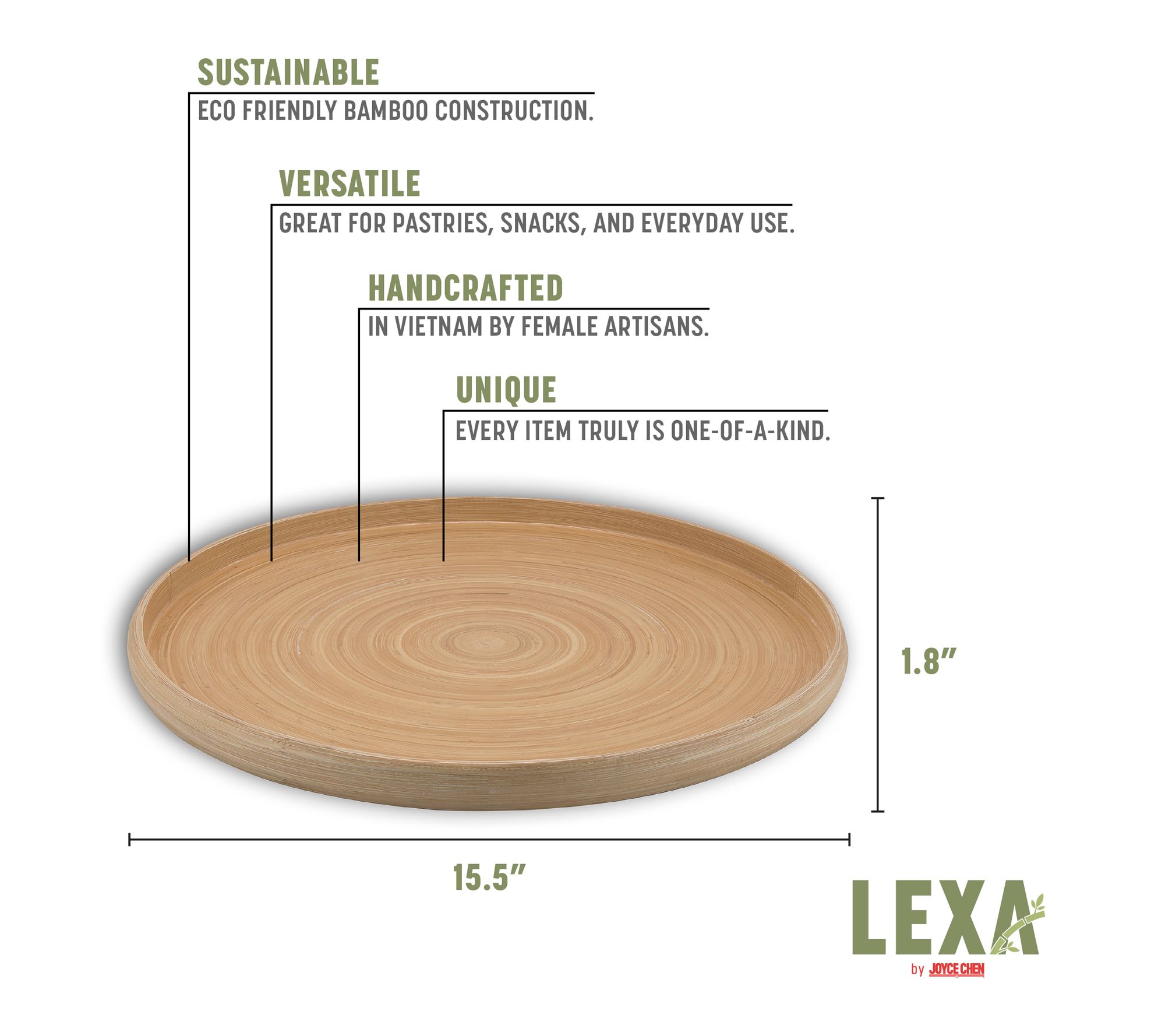 Lexa Bamboo Serving Tray, 16 Inch