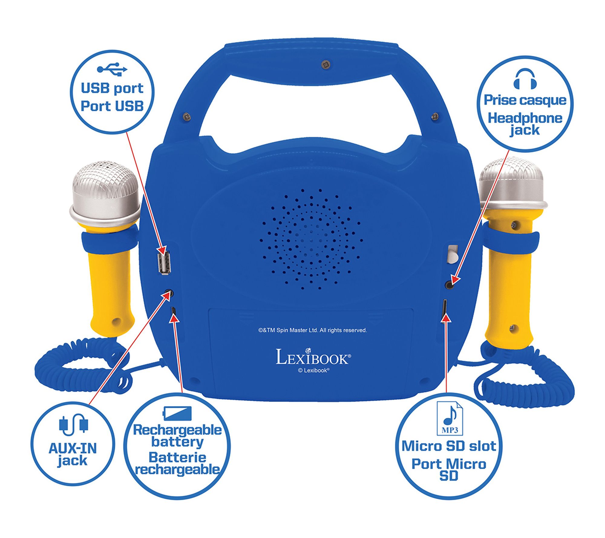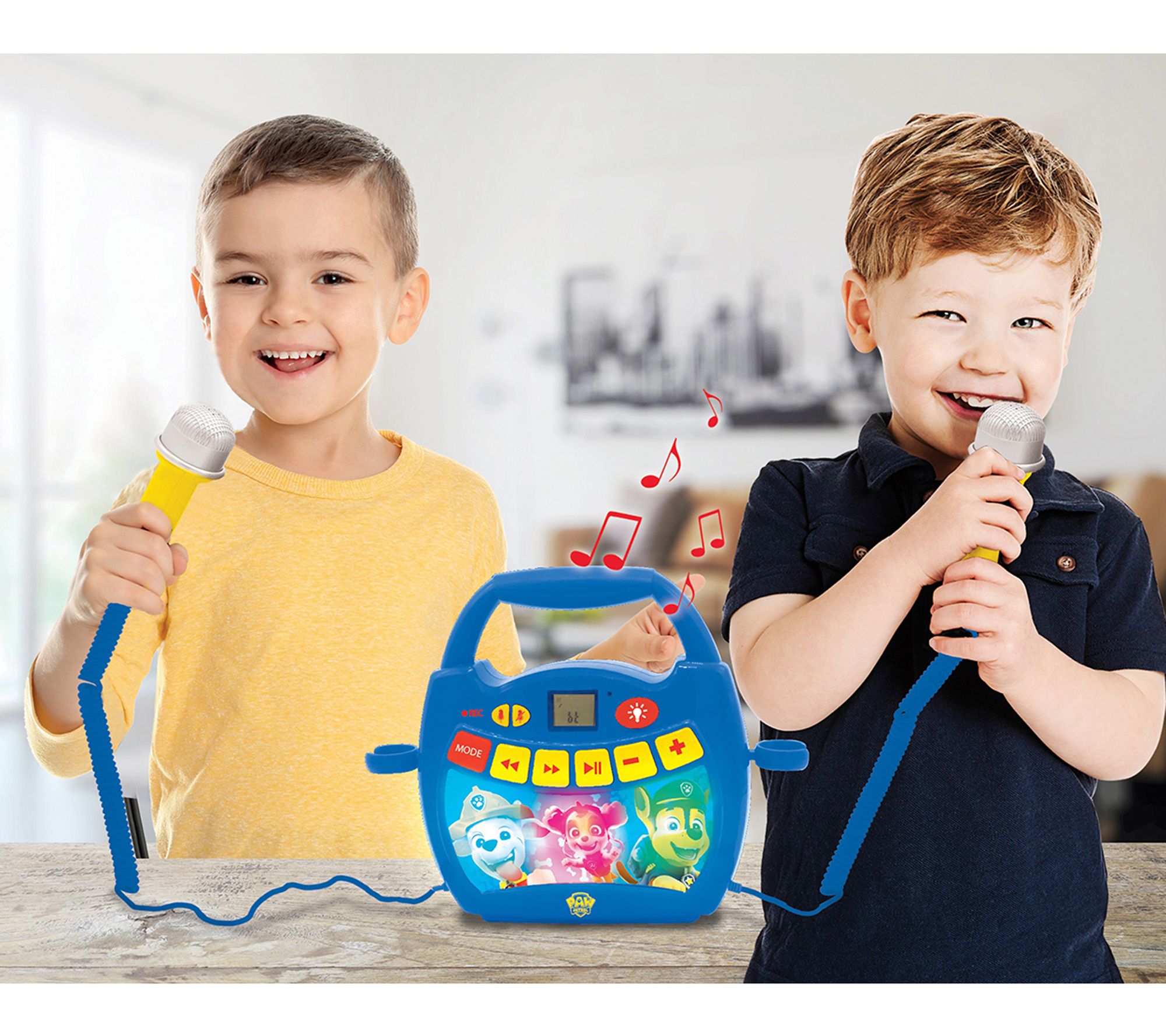 Turn any afternoon into a lively sing-along with this Paw Patrol Bluetooth karaoke speaker, designed to bring the joy of music and playful light effects to family gatherings or playdates. Little performers can grab the two included microphones, activate fun voice-changing effects, and record their own performances while a blinking light keeps the beat. From Lexibook.