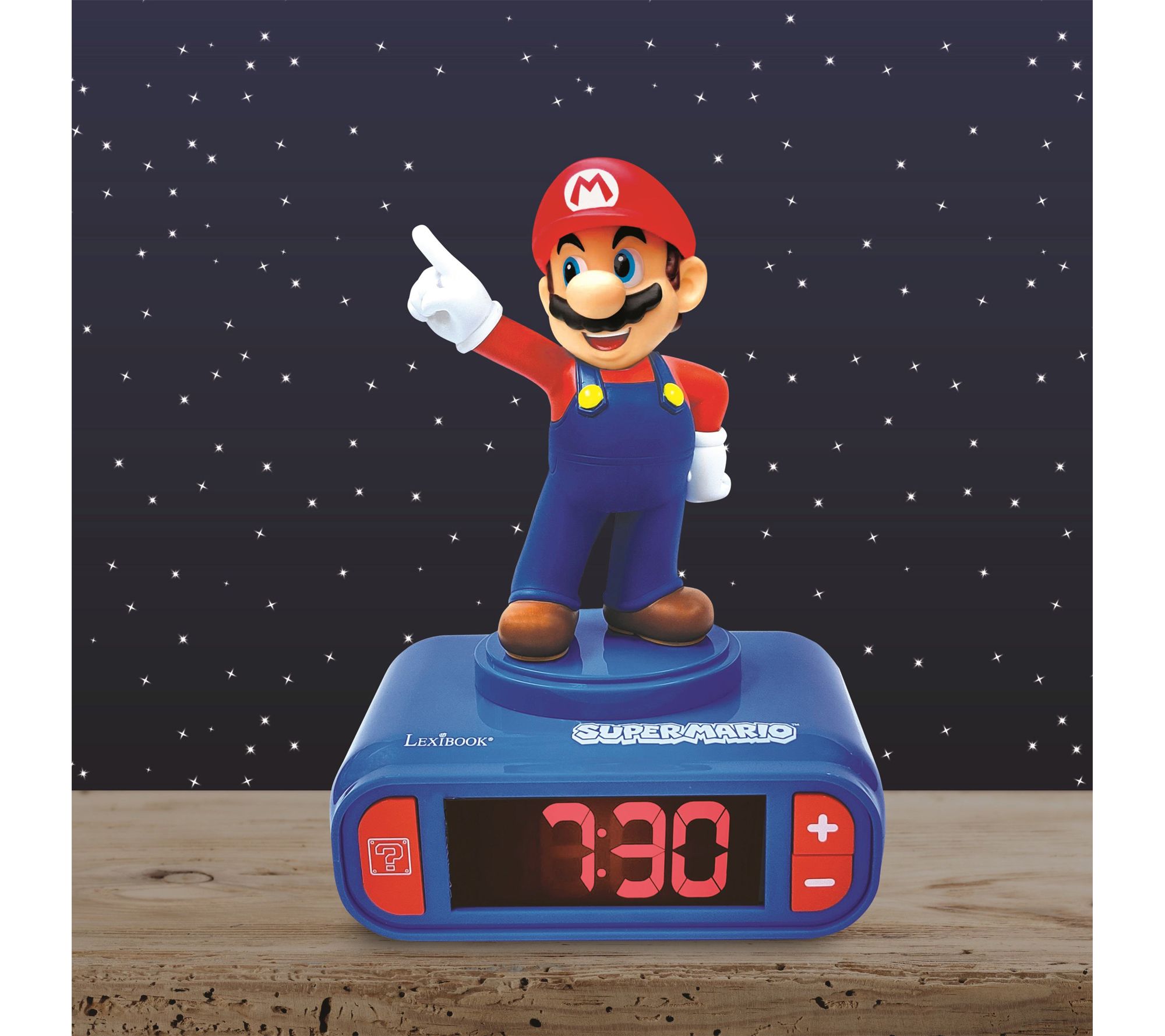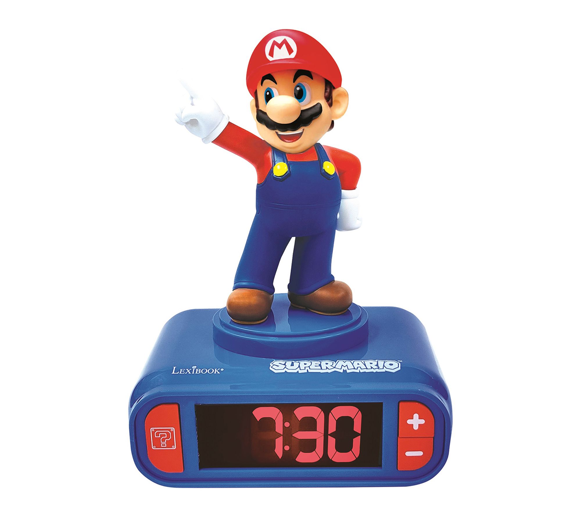 Start every morning with a smile when you wake up to this fun alarm clock featuring a Mario figurine and playful sound effects. The LCD backlit screen makes it easy to check the time, while a choice of Mario-inspired ringtones and a snooze function add excitement to your daily routine. From Lexibook.