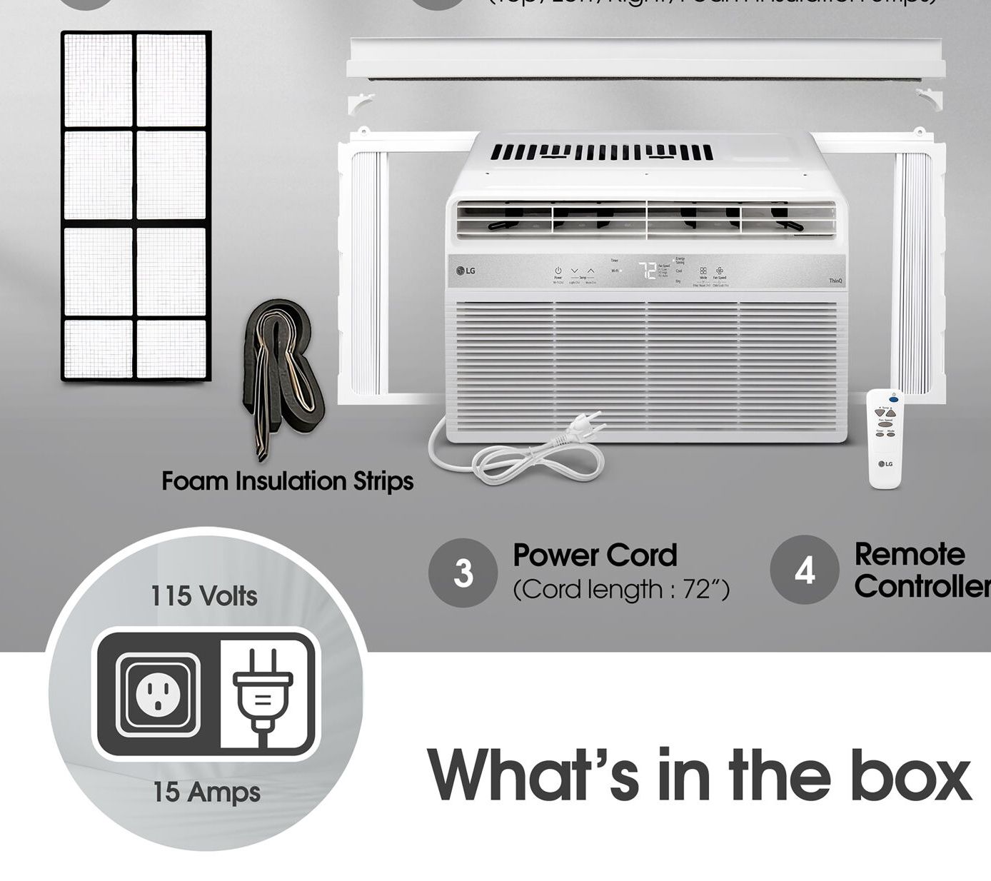 • Includes LW6024R air conditioner, remote control, two AAA batteries, mesh filter, trim kit, and manual
