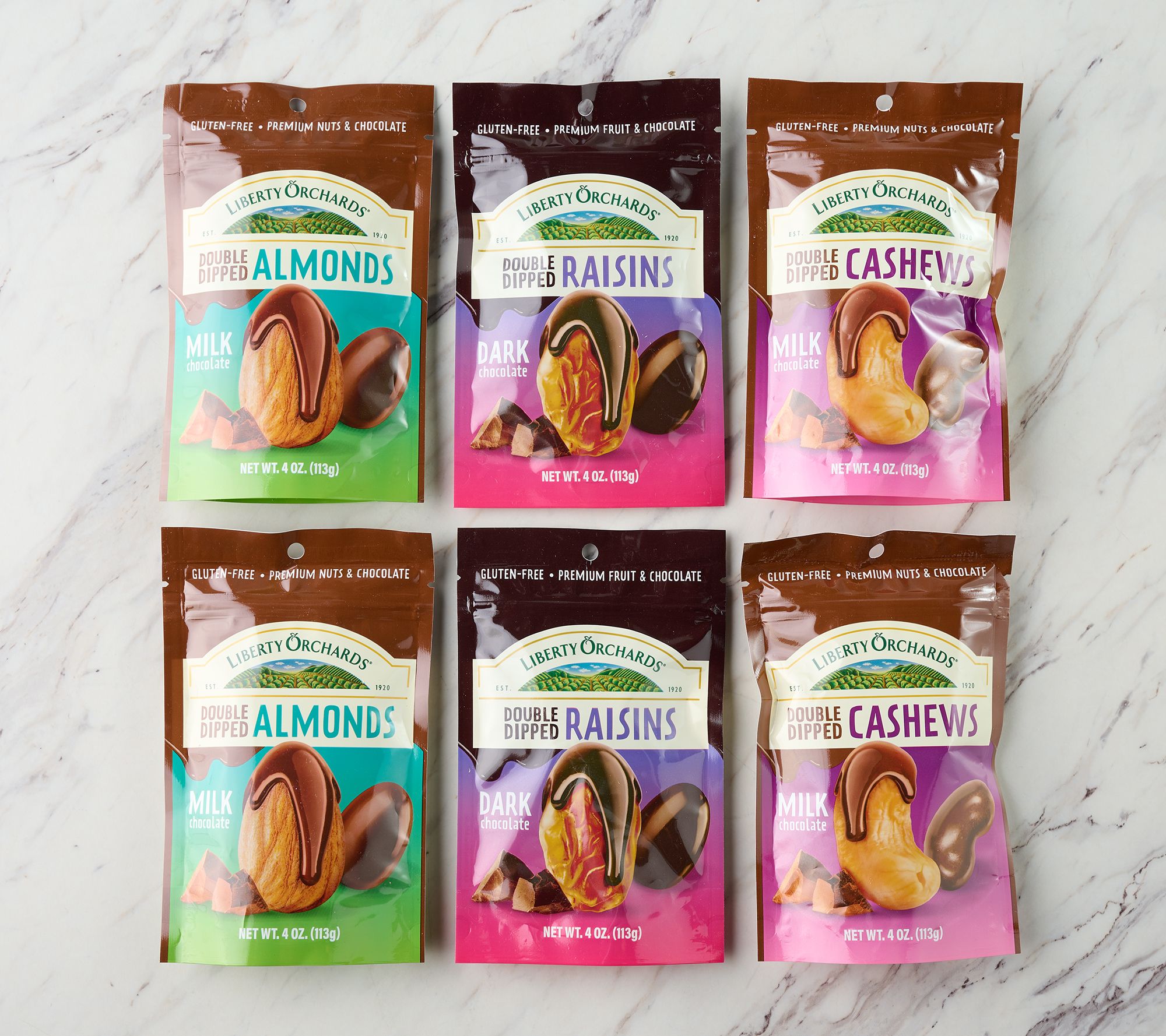 Liberty Orchard (6) 4oz Bags of Chocolate Covered Nuts or Raisins