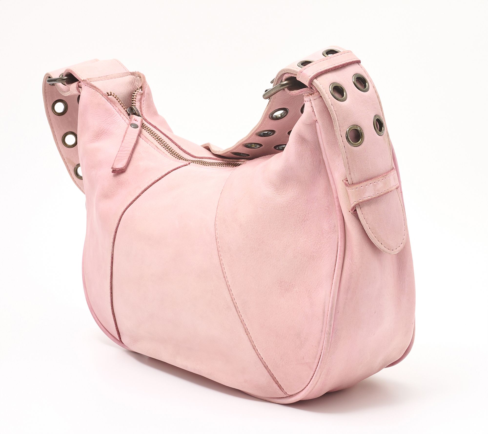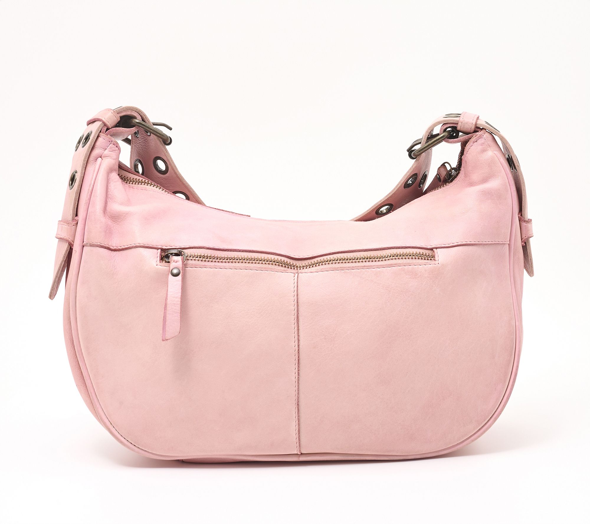 Whether you're heading into the city for the day or catching up with friends at the local cafe, this leather hobo keeps essentials secure and your look effortlessly chic. Sleek metal eyelets and a double-prong buckle bring standout style, while a fully zippered main compartment keeps everything you need within reach. From Libre Fair.