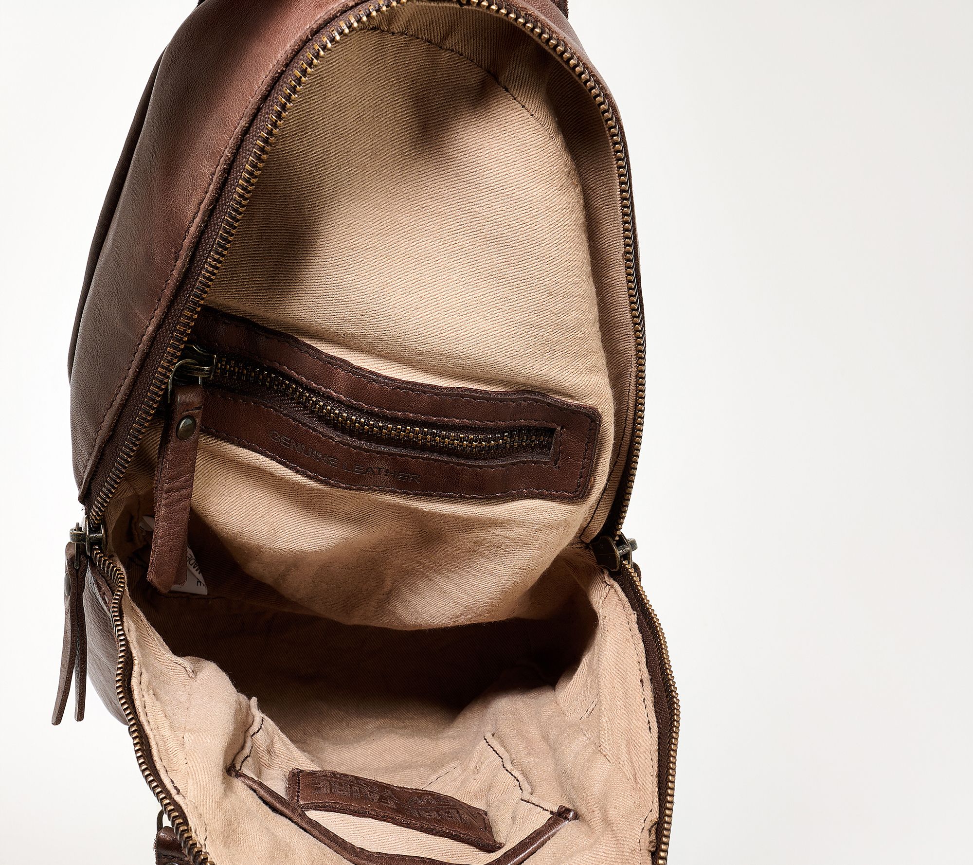 Day trips, errands, and on-the-go adventures feel effortless with this travel leather sling backpack. With its multiple zippered compartments, organized interior, and crossbody strap, you'll have all your necessities close at hand -- without sacrificing style. From Libre Faire.