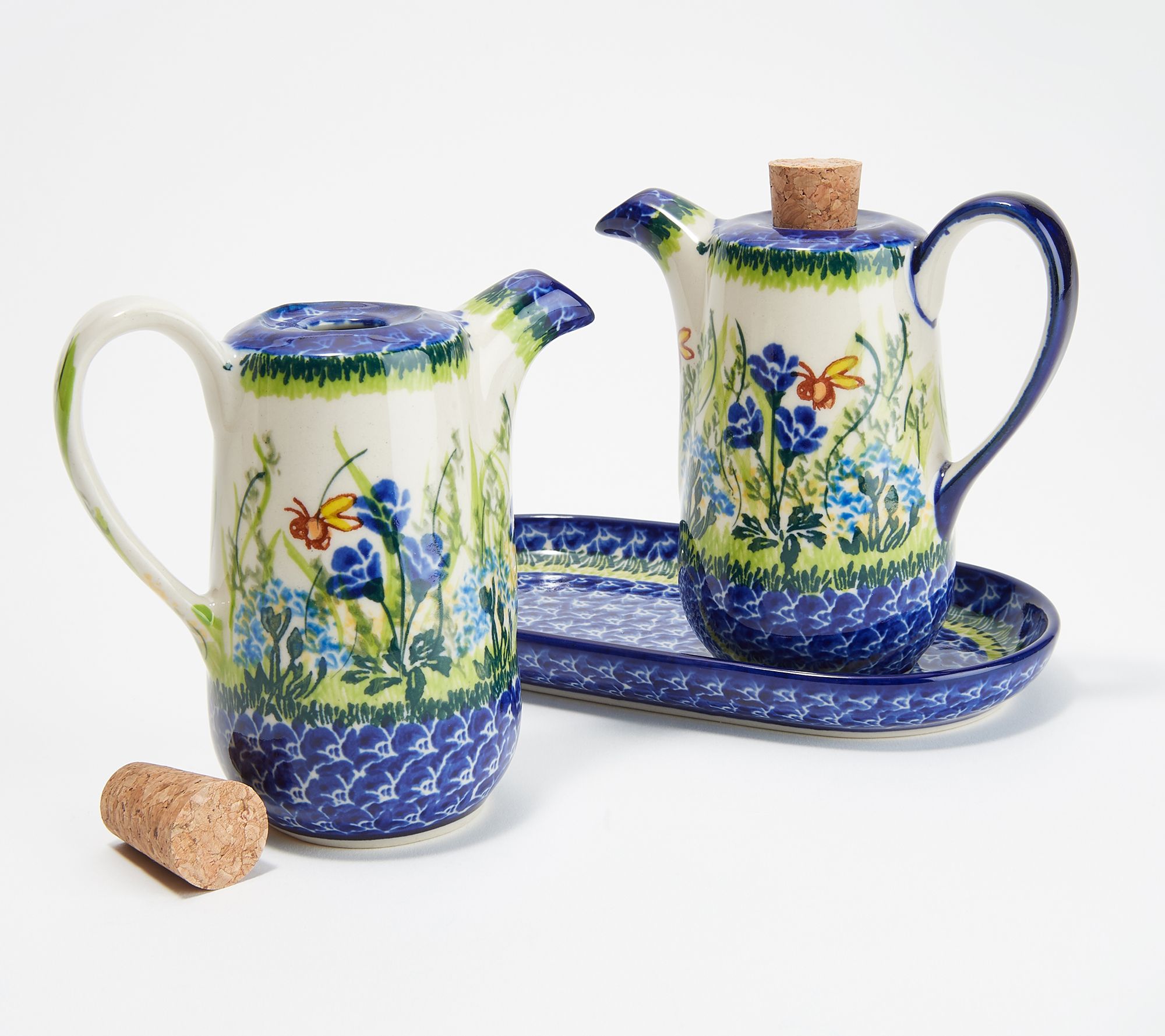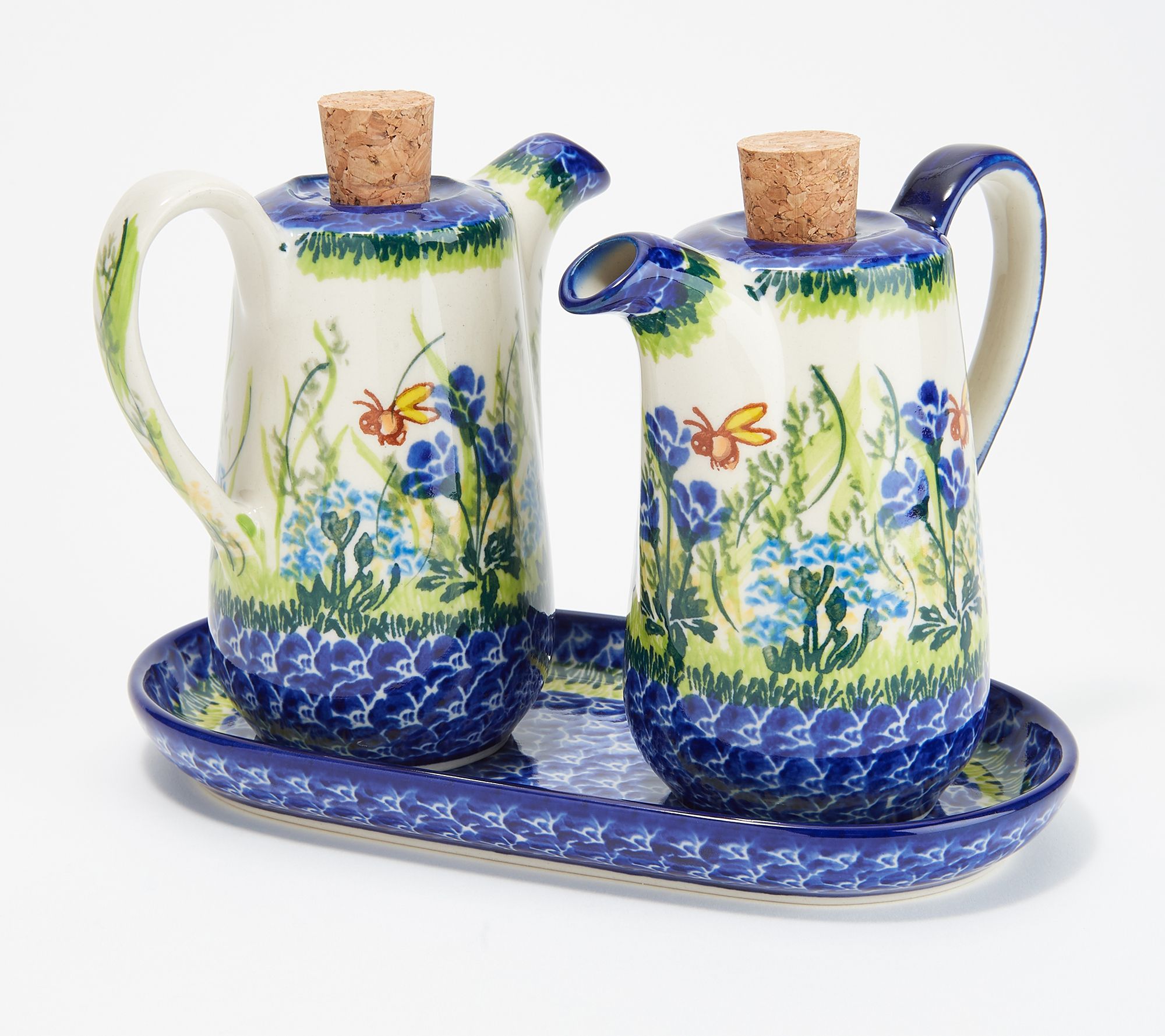 Lidia's Polish Pottery Hand-Painted Olive Oil Set