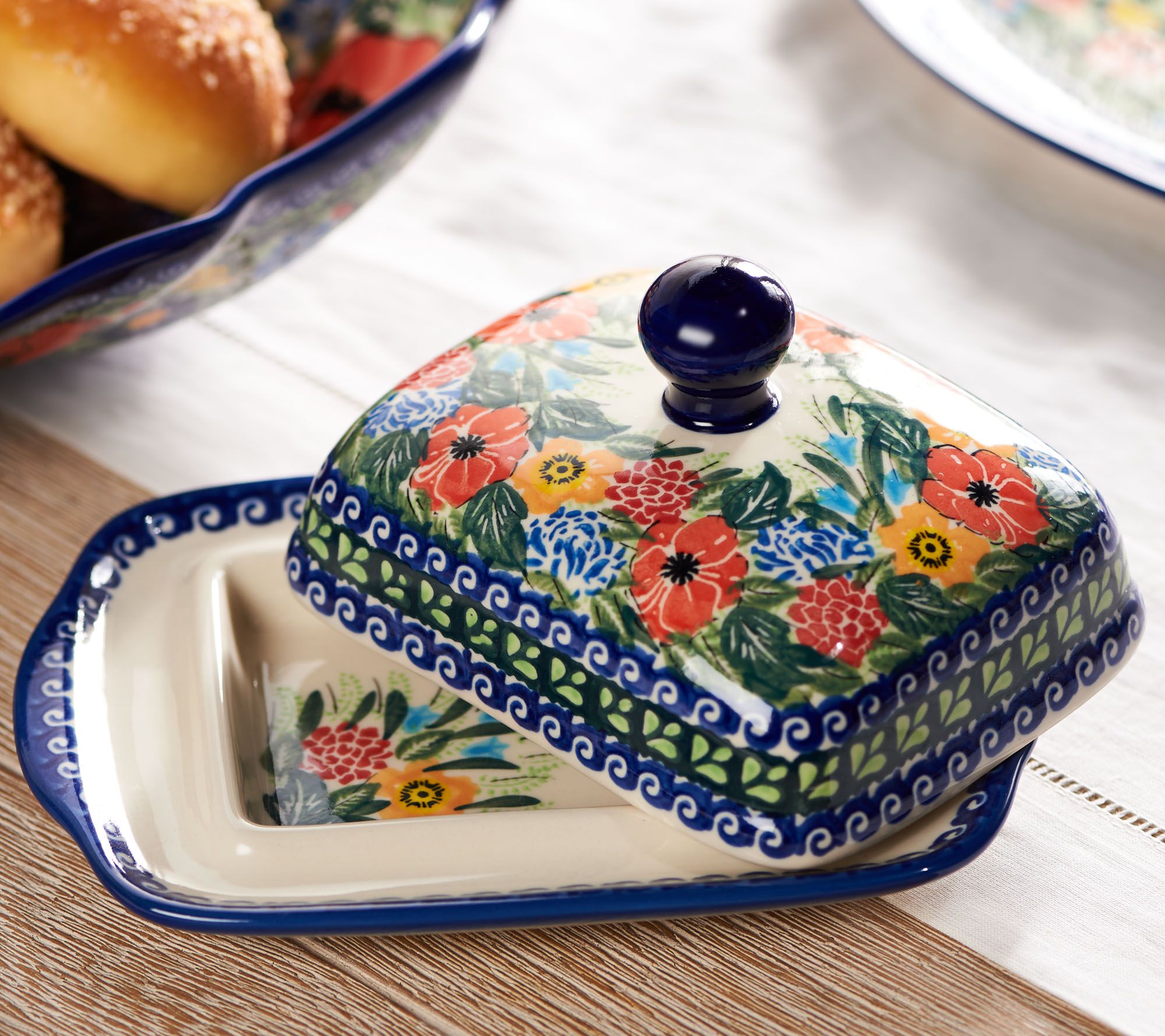 Keep butter ever-on hand for everything from pierogies to dinner rolls with this wonderfully painted butter dish. From Lidia's Polish Pottery.