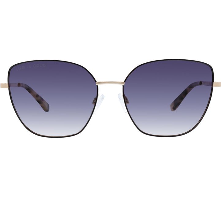 These Life Is Good Crescent geometric sunglasses feature gradient TAC polarized lenses and a classic metal frame with comfortable nose pads. A subtle etching of the Life is Good logo and an inspiring message inside the temple remind you to carry good vibes everywhere. From Life Is Good.