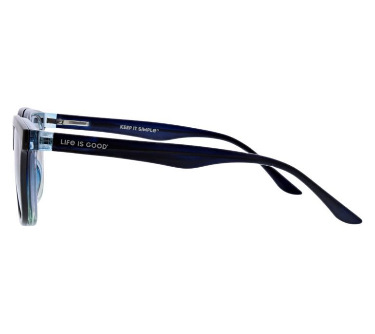 Protect your eyes in style with the Life is Good Eyre Square blue light readers. These readers come with a sunglass clip for outdoor use. The wire core temple and spring hinges ensure comfort and a secure fit, with the added bonus of a positive "Today is a Keep it Simple" message inside the temple. Keep your glasses safe in the microfiber pouch that also serves as a handy cleaning cloth. From Life is Good.