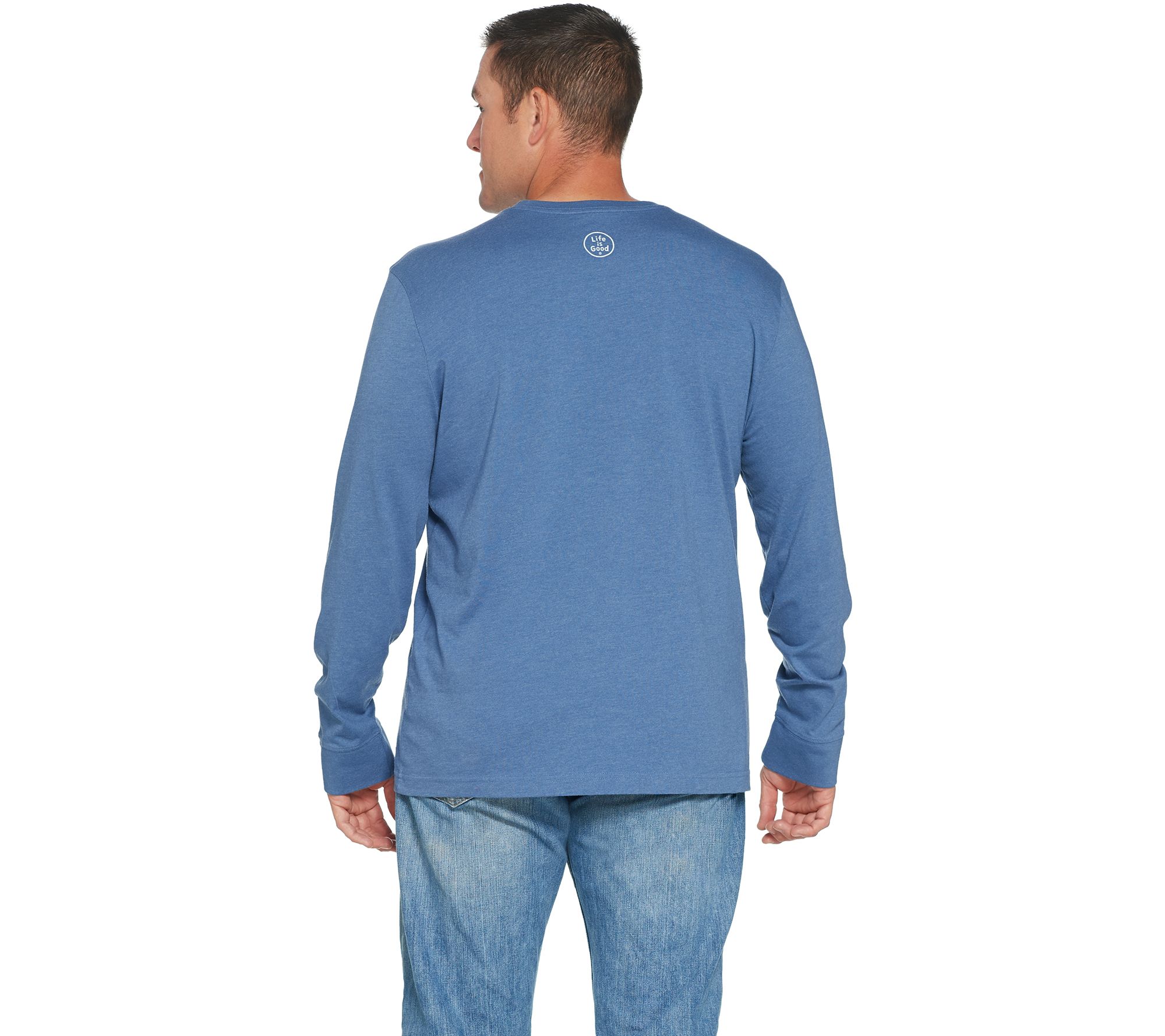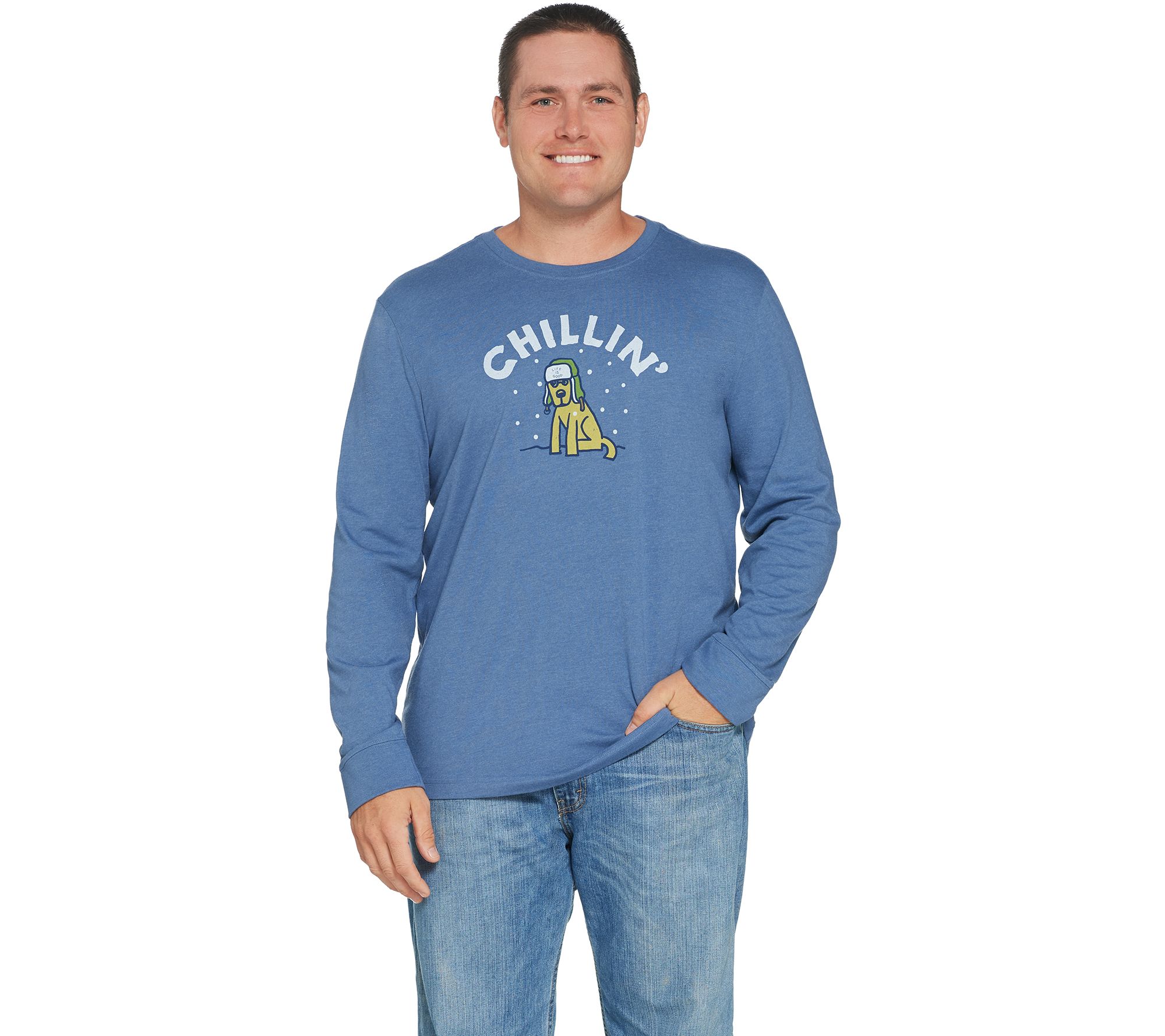 He's in a laid-back mood today, sending his easygoing vibes to the world with this ultra-comfy long-sleeved tee. From Life is Good.