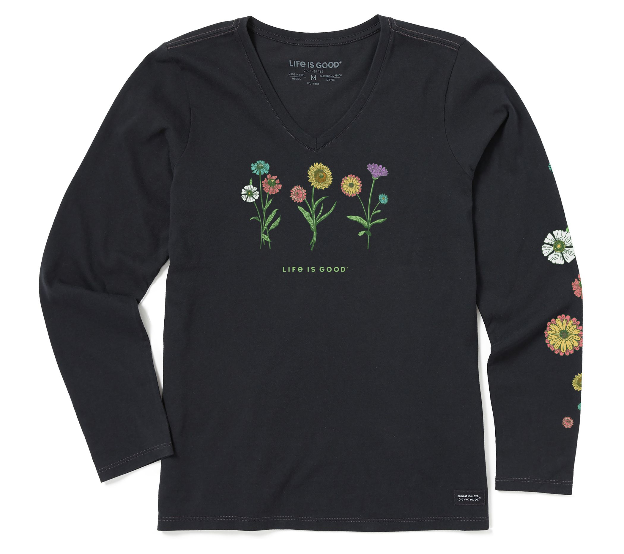 With bright, beautiful flower graphics and blooms adorning the arm, this lovely long-sleeve tee is perfect when you head out for a nature walk on a chilly morning. From Life is Good.
