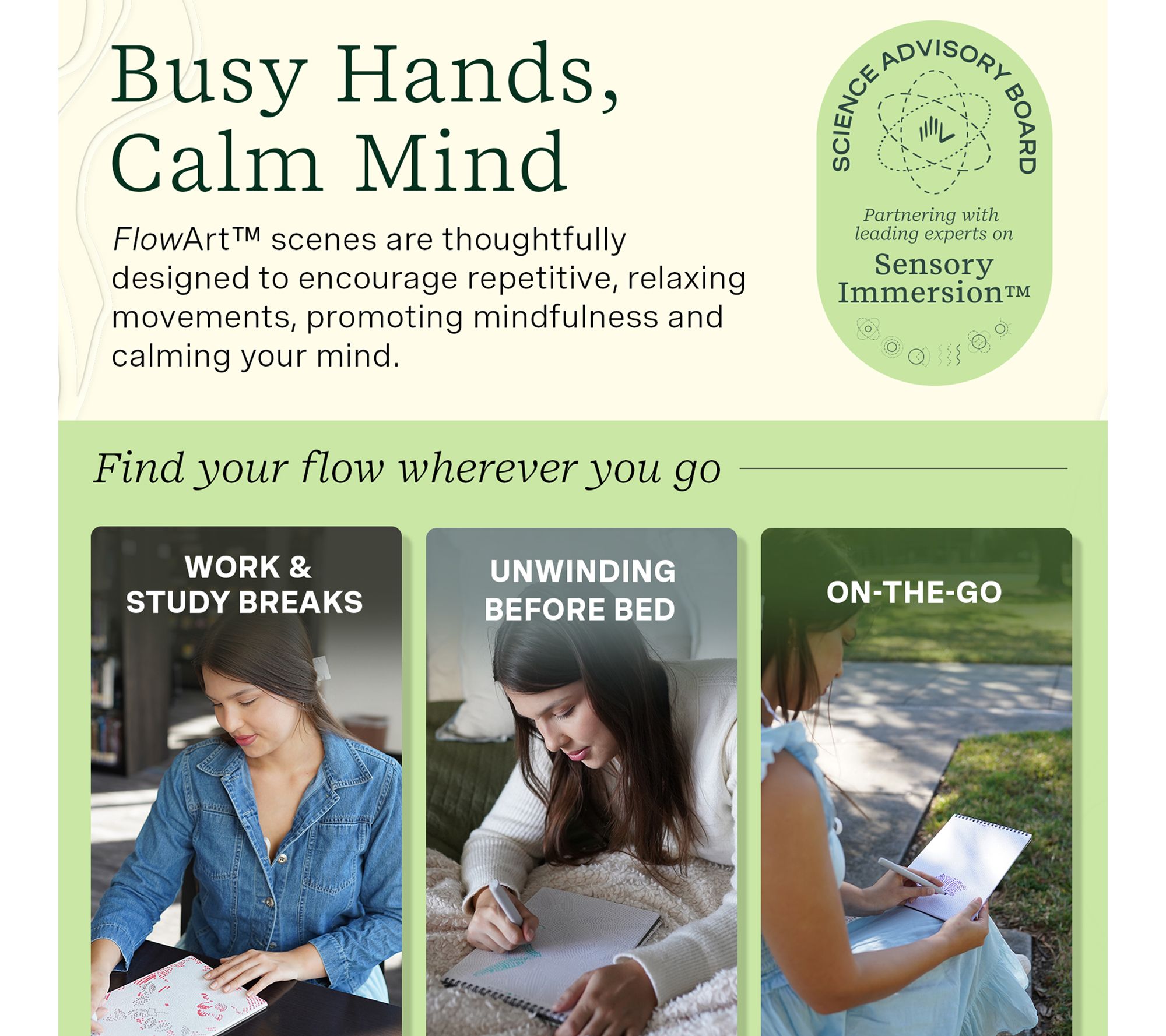 • Each pad features 20 meditative dot-by-letter scenes and detachable storage tray for markers