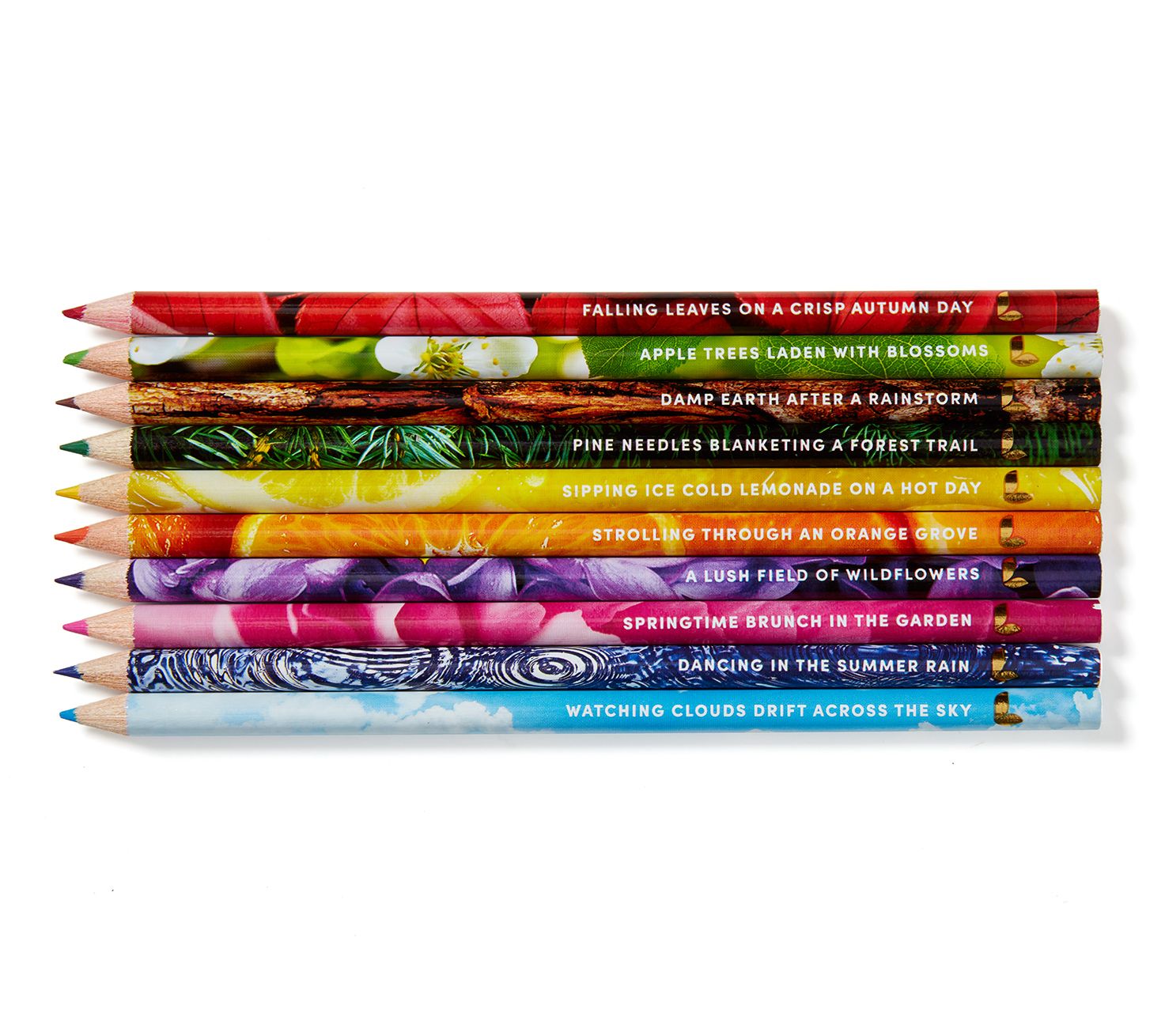 • Includes 10 essential oil-infused pencils, diffuser pen, and ink refill