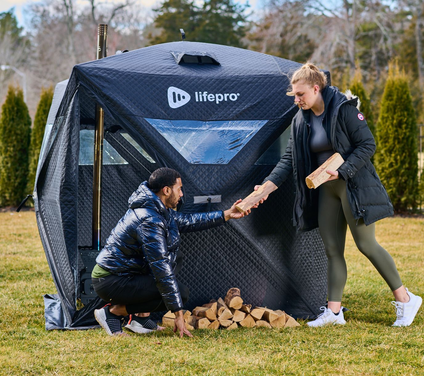 Elevate your outdoor relaxation with the ZenZone all-weather outdoor sauna tent. Perfect for camping, beach visits, or your backyard, the portable, insulated tent transforms any area into a personal sauna or steam room. It sets up quickly with no power required and includes a wood-burning stove and sauna rocks for a soothing experience. From LifePro.