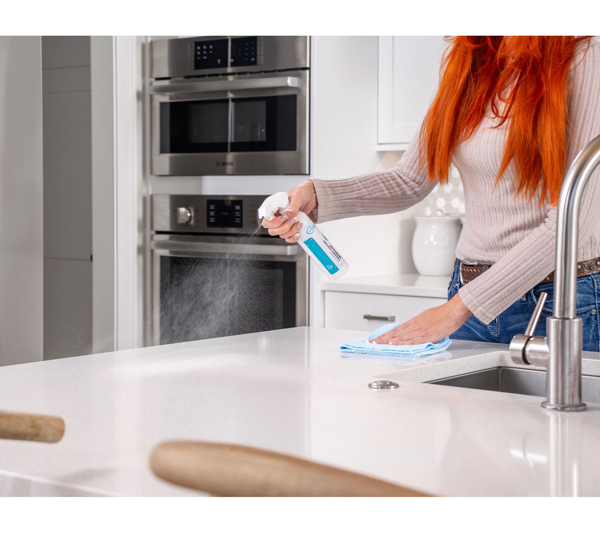 Helps prevent stains on stainless steel, glass, granite, quartz, marble, tile, and laminate