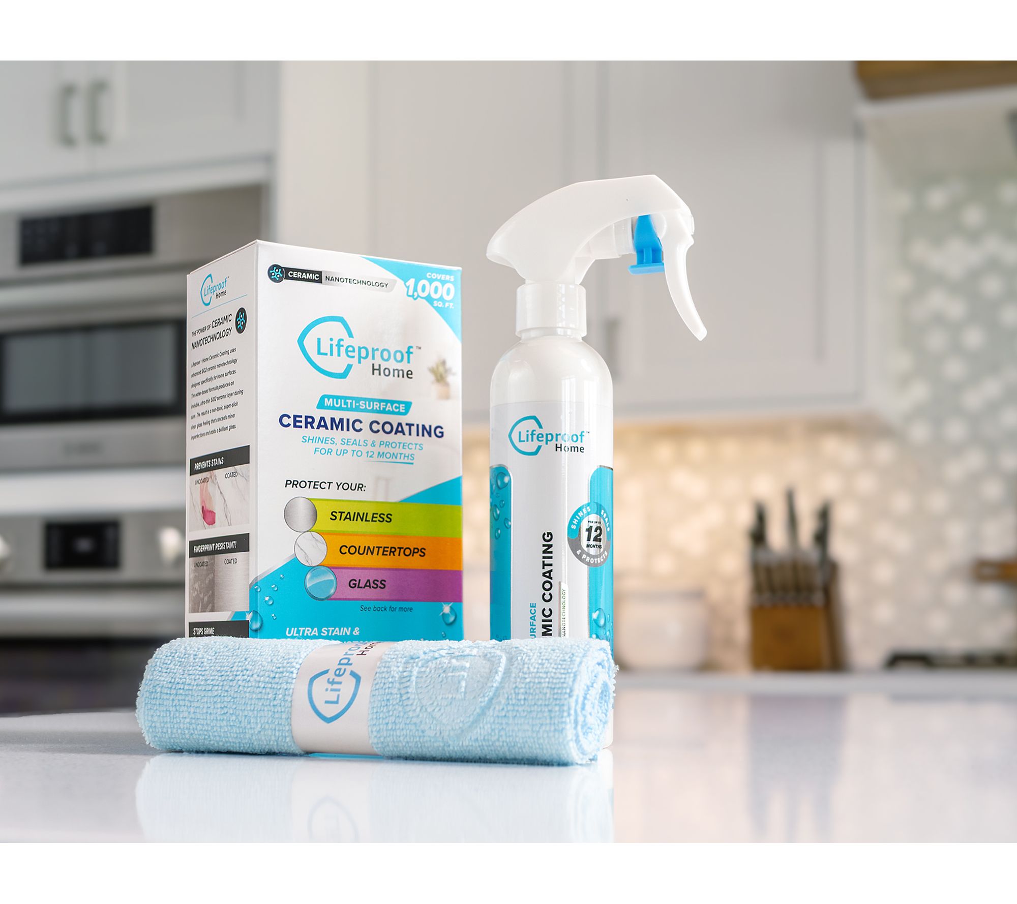 Maintain the look of new bath fixtures, countertops, and kitchen appliances with this multi-surface ceramic spray coating. The easy-to-apply formula forms an invisible layer that helps repel liquid, resist stains, and prevent fingerprints, making routine cleaning a breeze with just soap and water. From Lifeproof Home.
