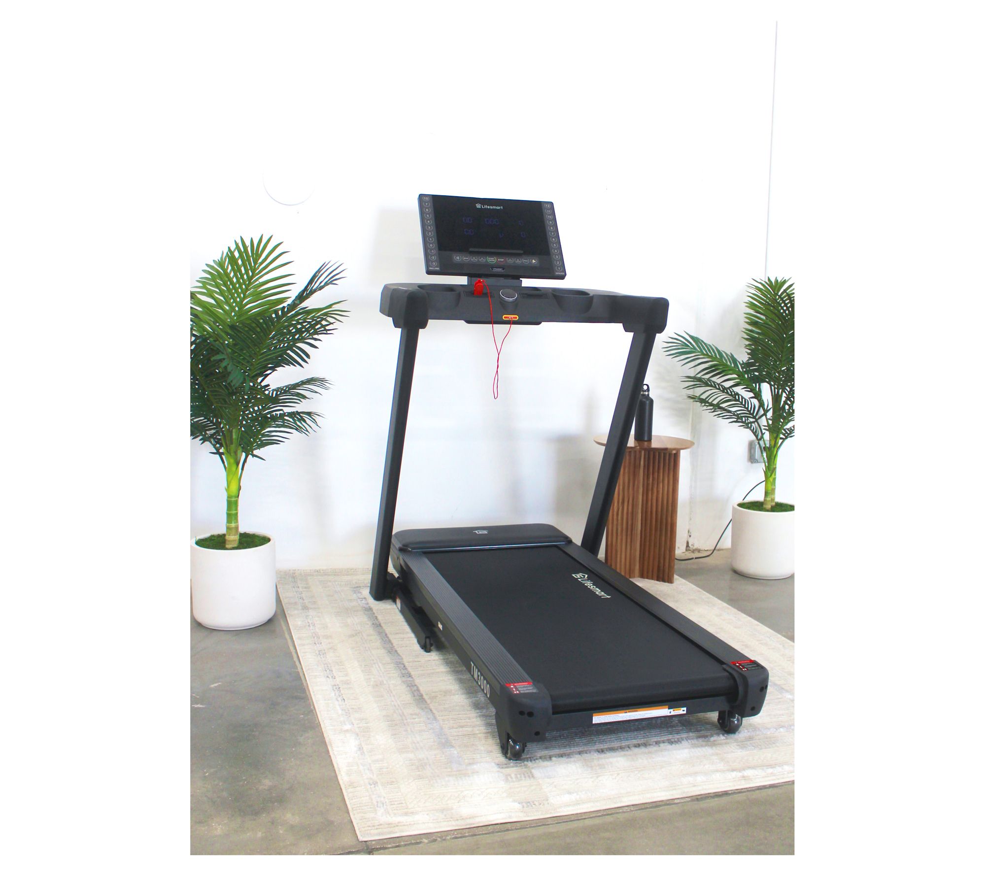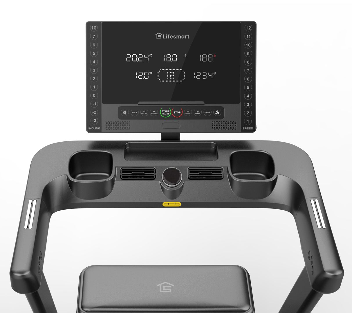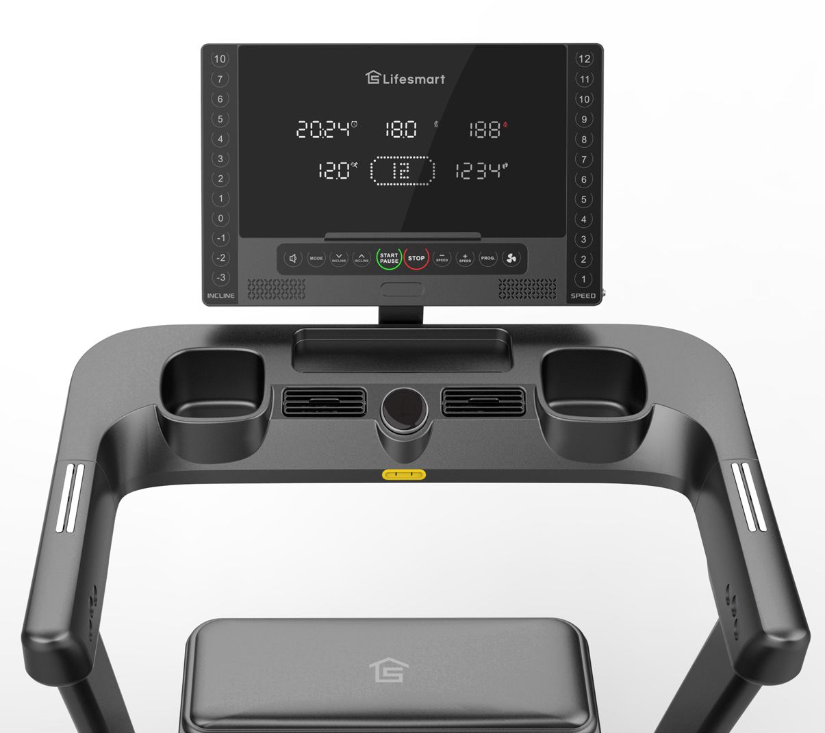 Every run feels like a fresh challenge on this treadmill with its innovative power folding feature and sleek frame. Whether you're powering through interval training or taking it slow on a steady incline, your stats stay front and center with the expansive HD LED display, while cooling fans, Bluetooth speakers, and built-in device holders keep motivation high and workouts comfortable. From LIFESMART.