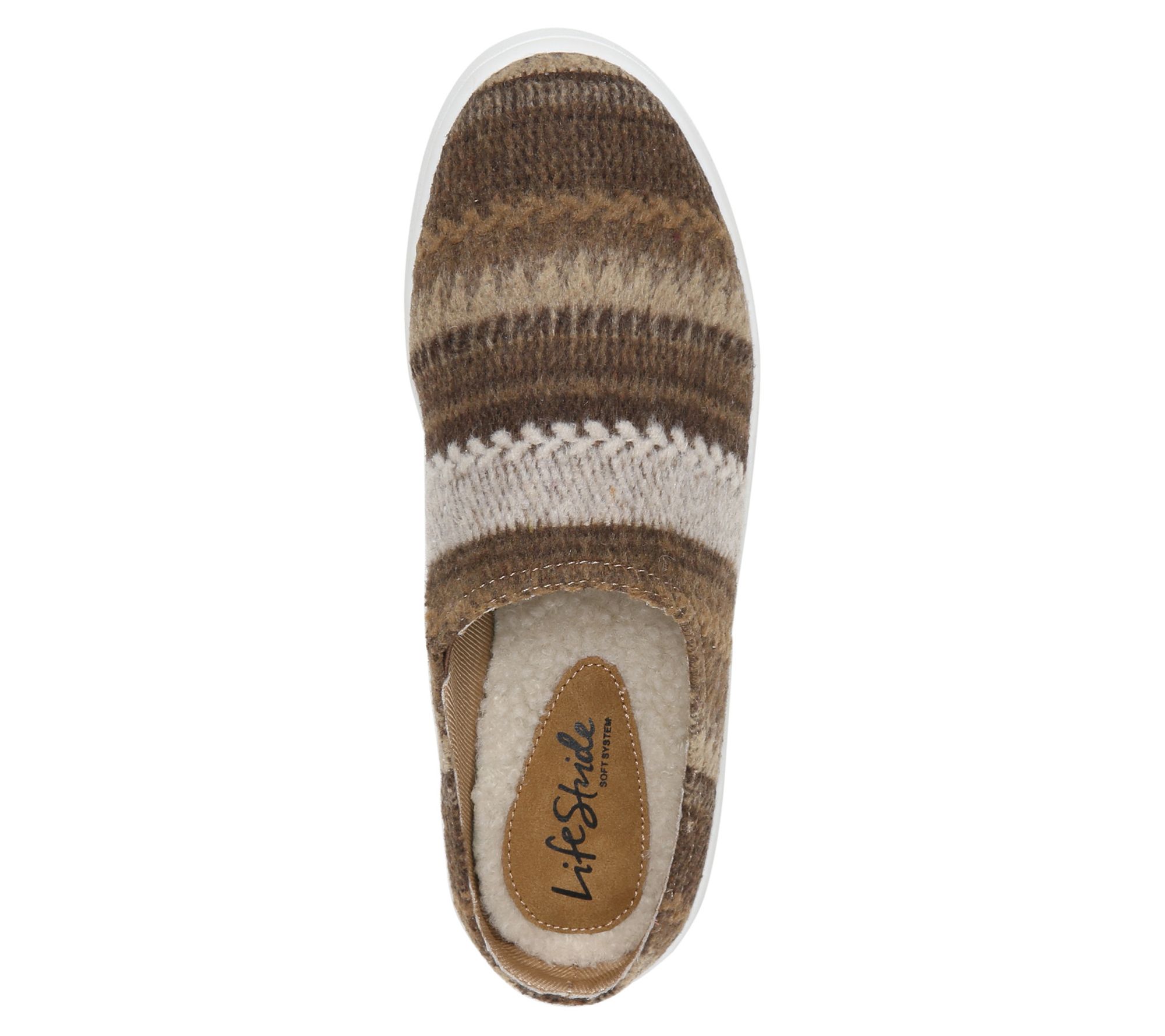 Cozy and sporty, this cool slip-on sneaker mule is a game-changer. Felted fabric upper with a round toe, slip-on fit, full shearling lining for a cozy feel, and sporty white sole. Soft System comfort package provides all-day support. From Lifestride.