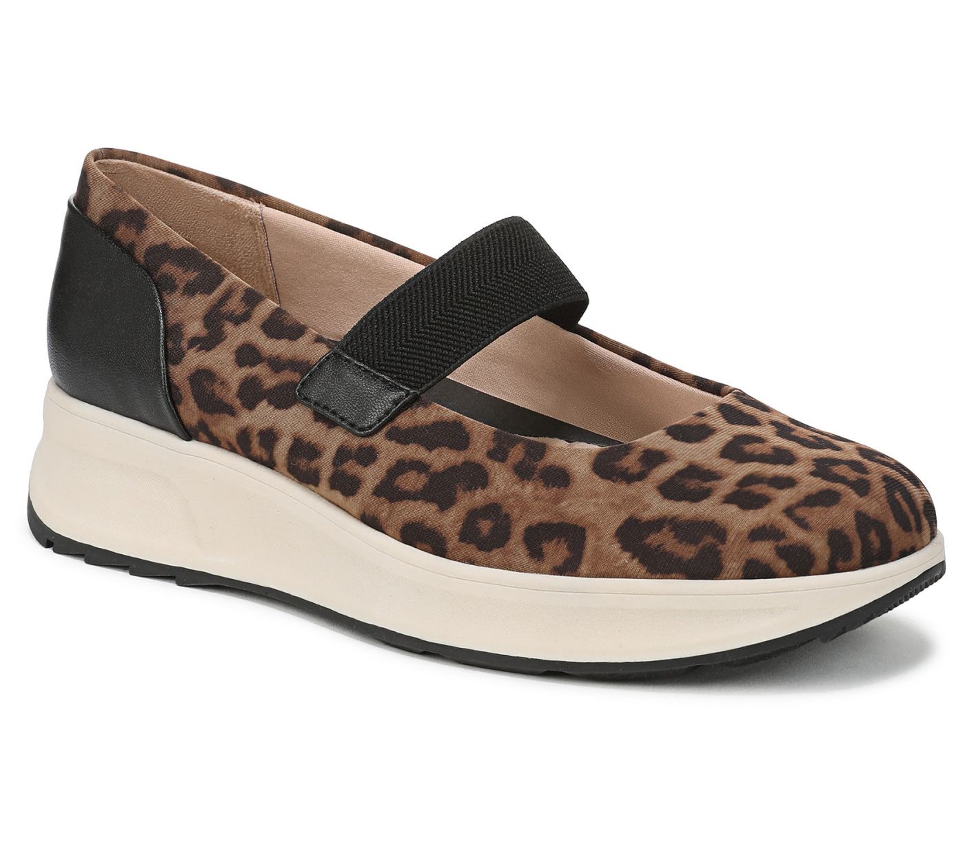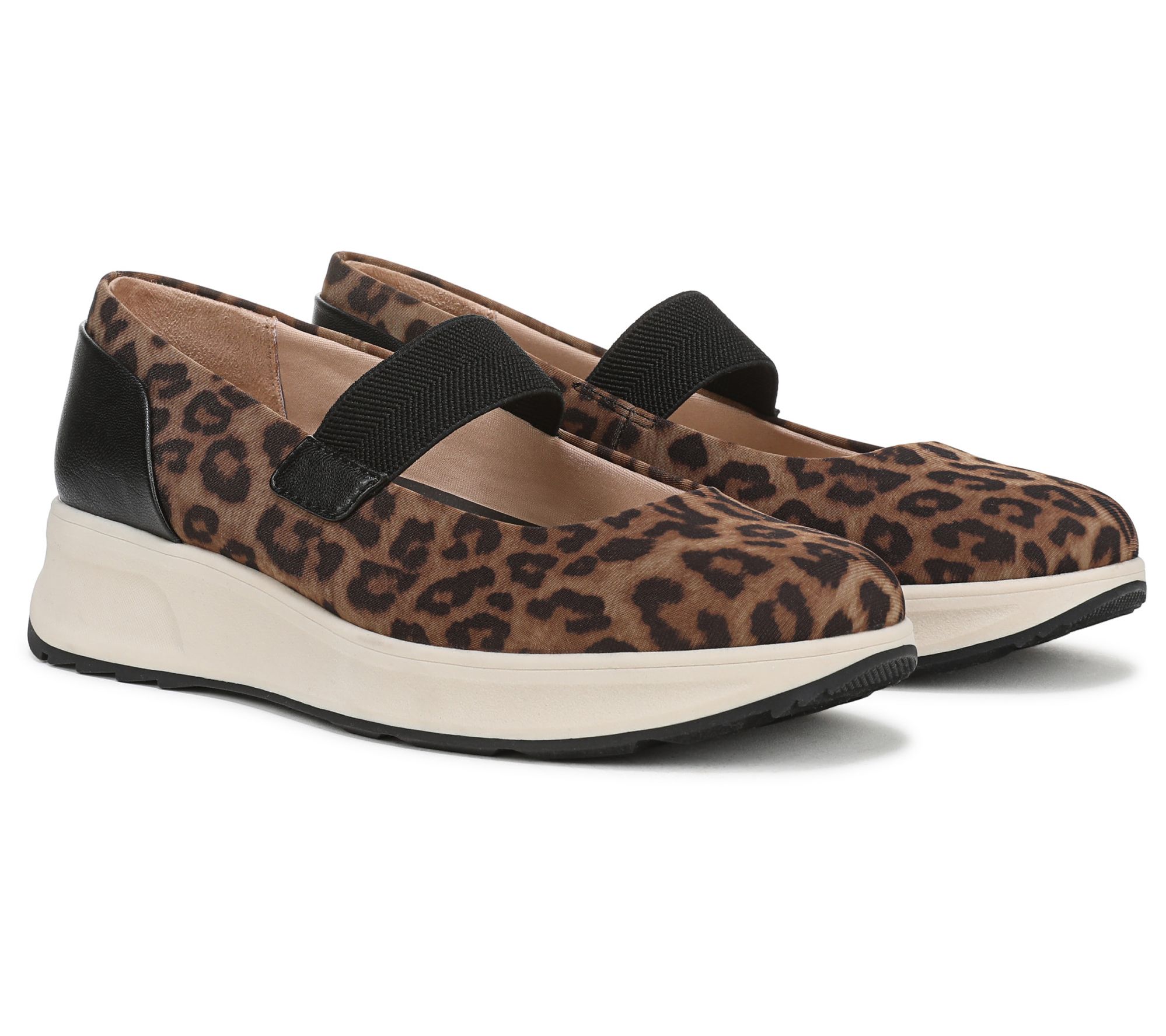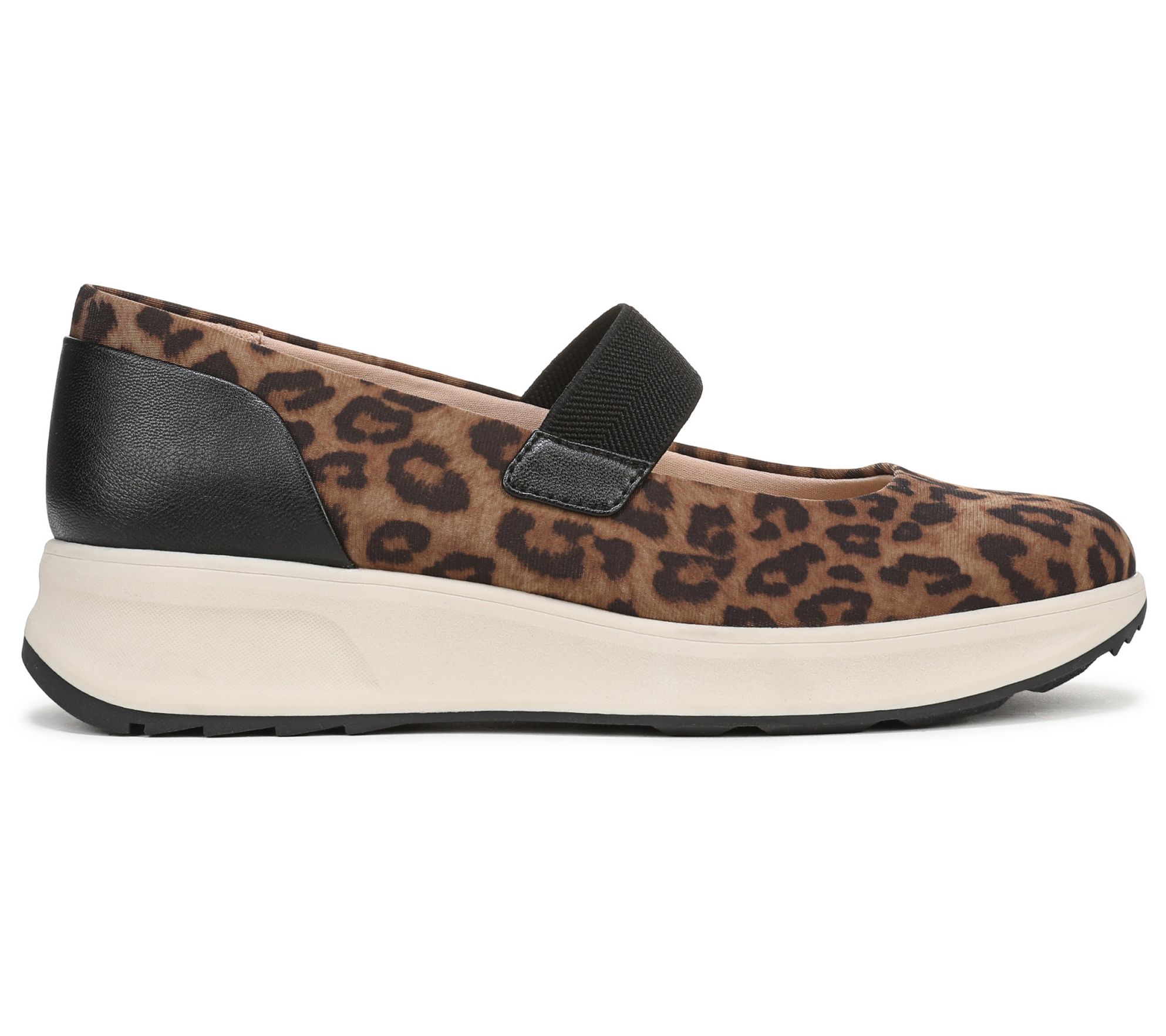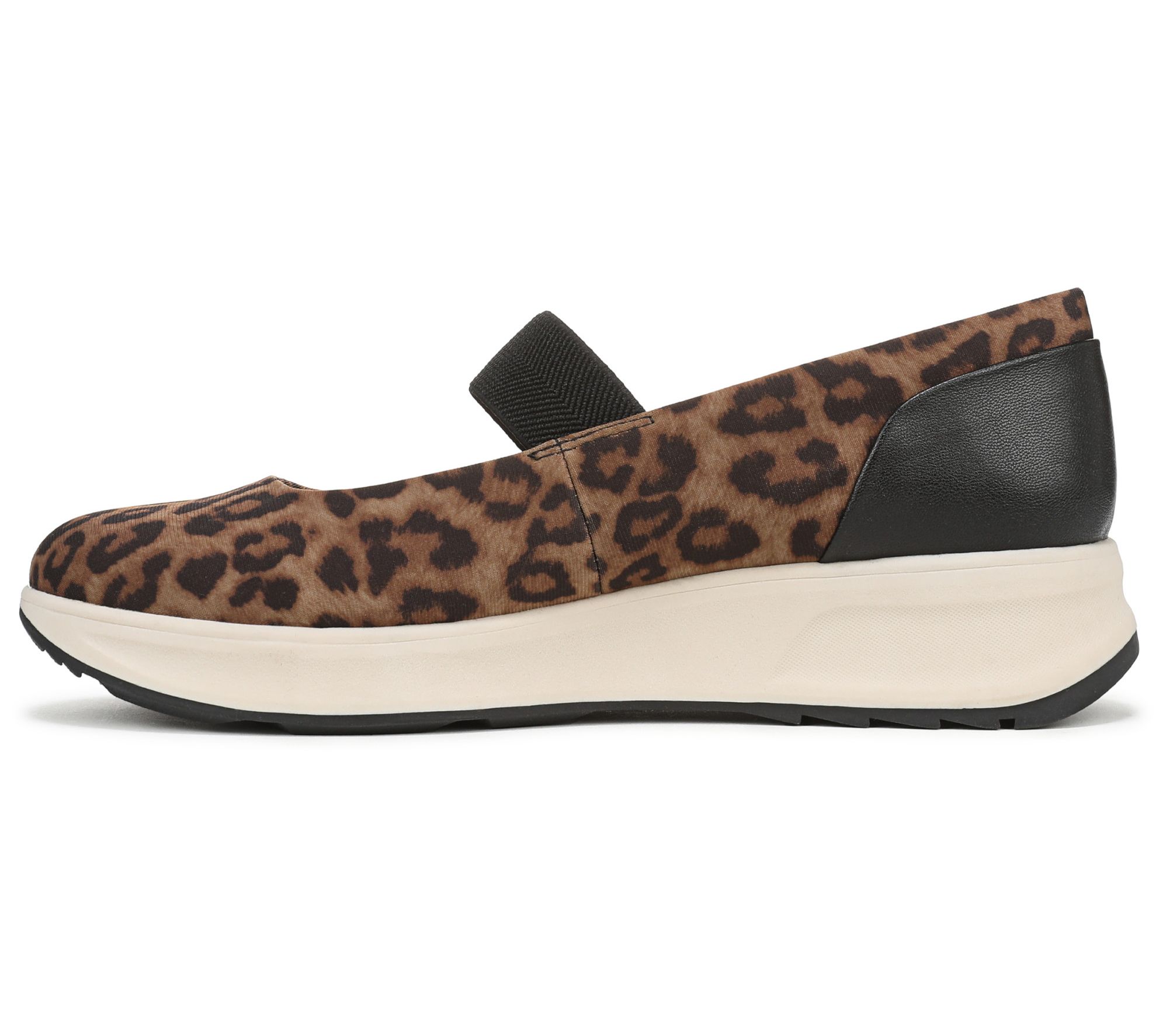 Slip-on design with stretch Mary Jane strap and rounded toe