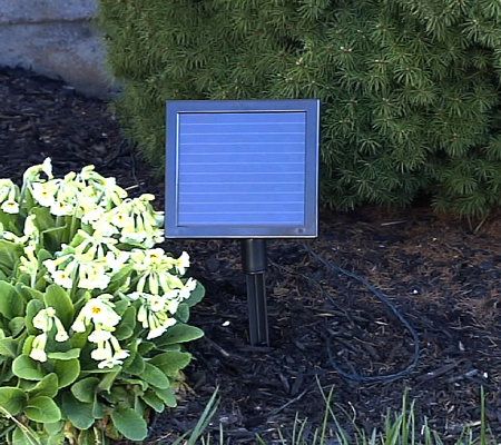• Includes solar panel and string of 120 warm white LED bulbs