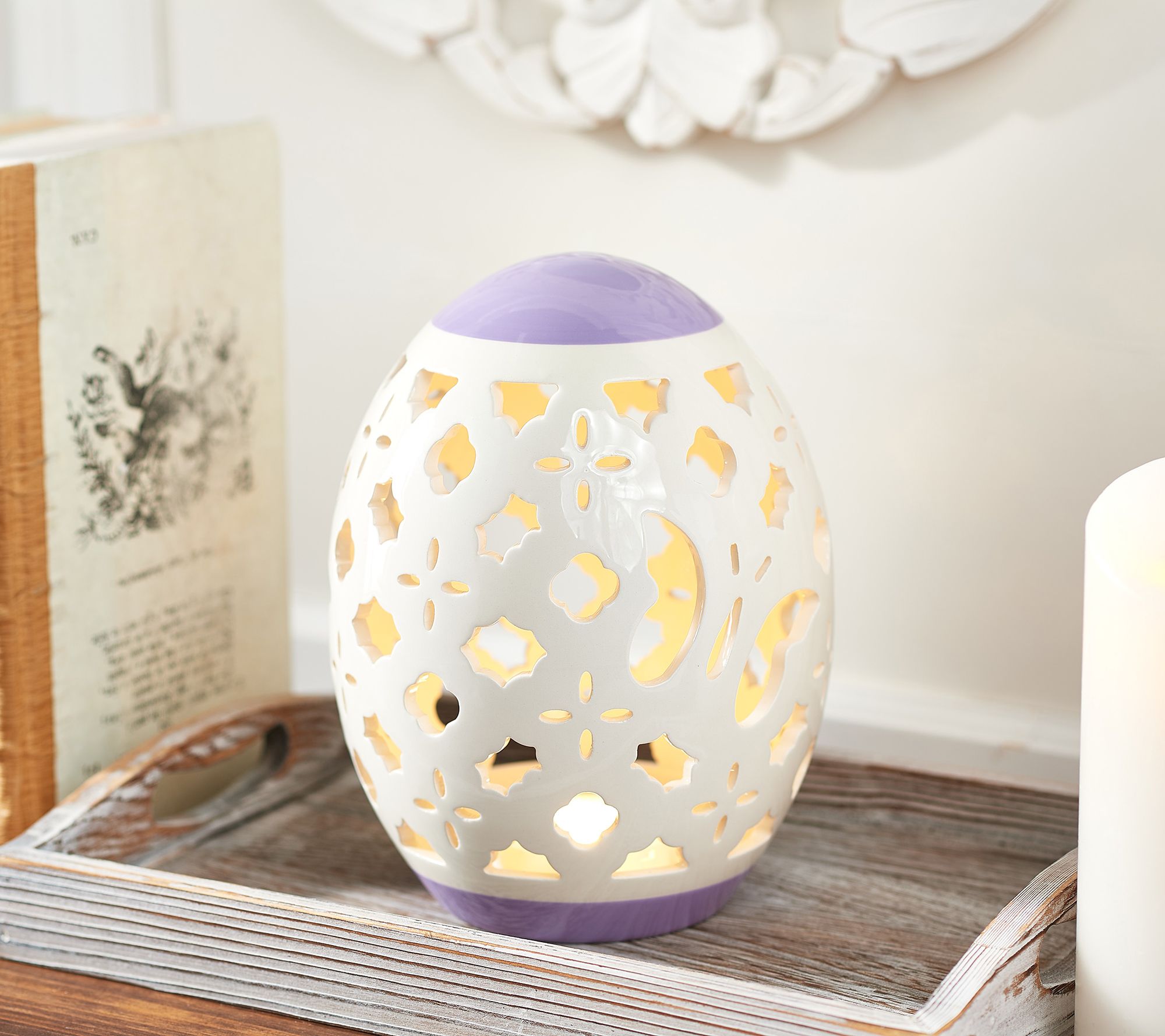 Lightscapes 8" Ceramic Illuminated Cutwork Egg