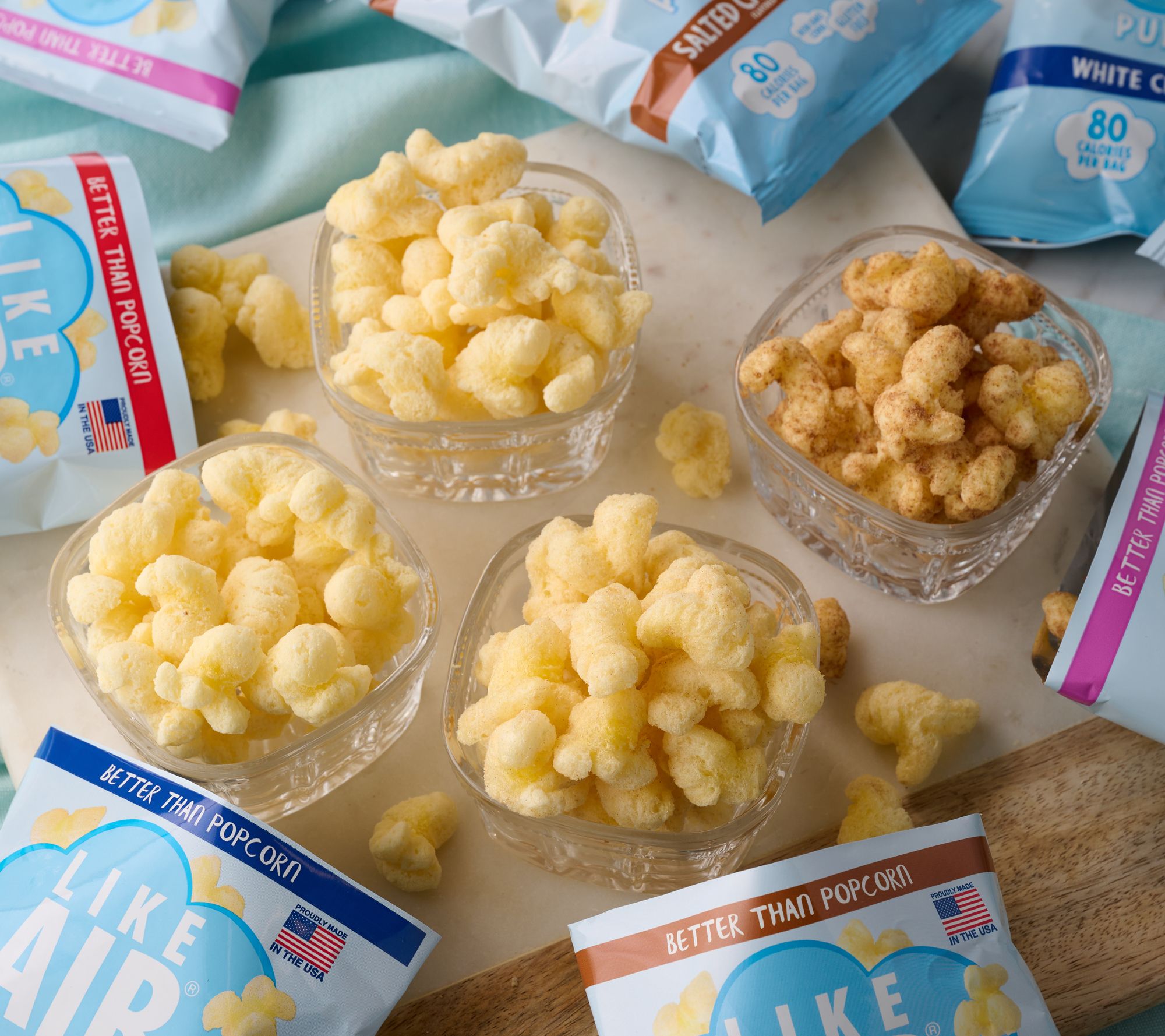 • Combo: five bags of each flavor -- Classic, White Cheddar, Salted Caramel, and Cinnamon Bun