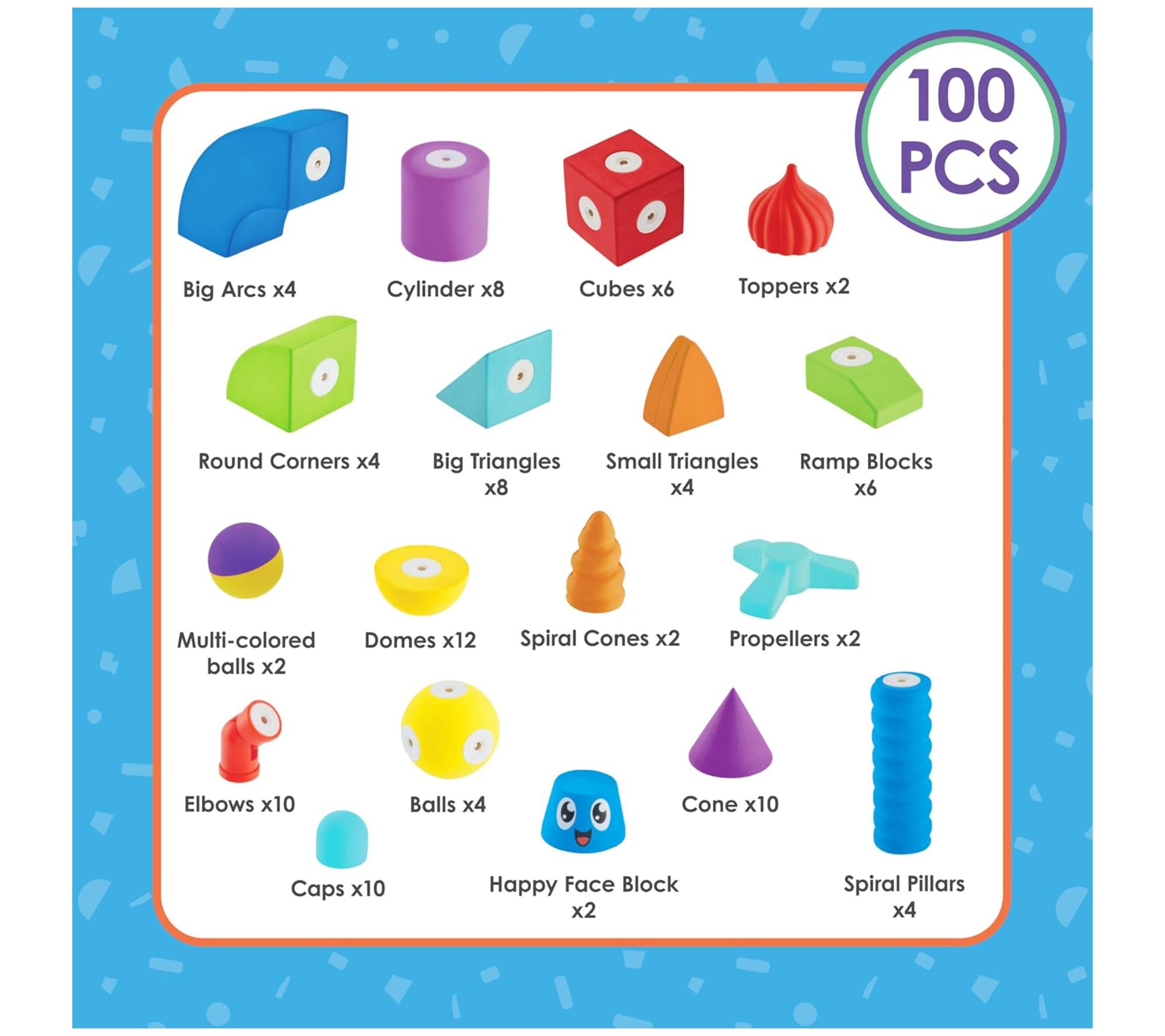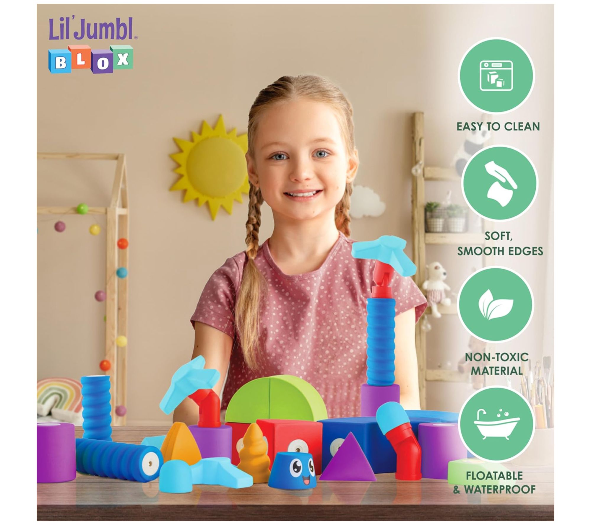 Introduce your child to the fun and enriching world of STEM education with the Lil' Jumbl 100-piece blox foam blocks set. These innovative building blocks help develop cognitive thinking, hand-eye coordination, and fine motor skills. With unique magnetic mechanisms, toddlers can easily create and build endless structures.