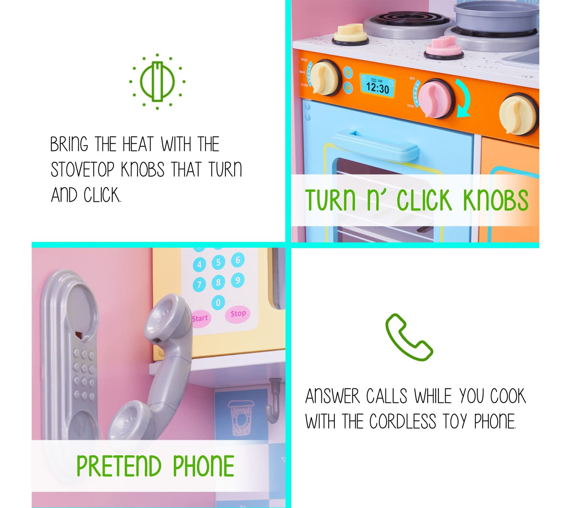 • Includes wooden play kitchen, play pot, pot lid, play frying pan, two utensils, two play ice cubes, cup, and complete hardware pack
