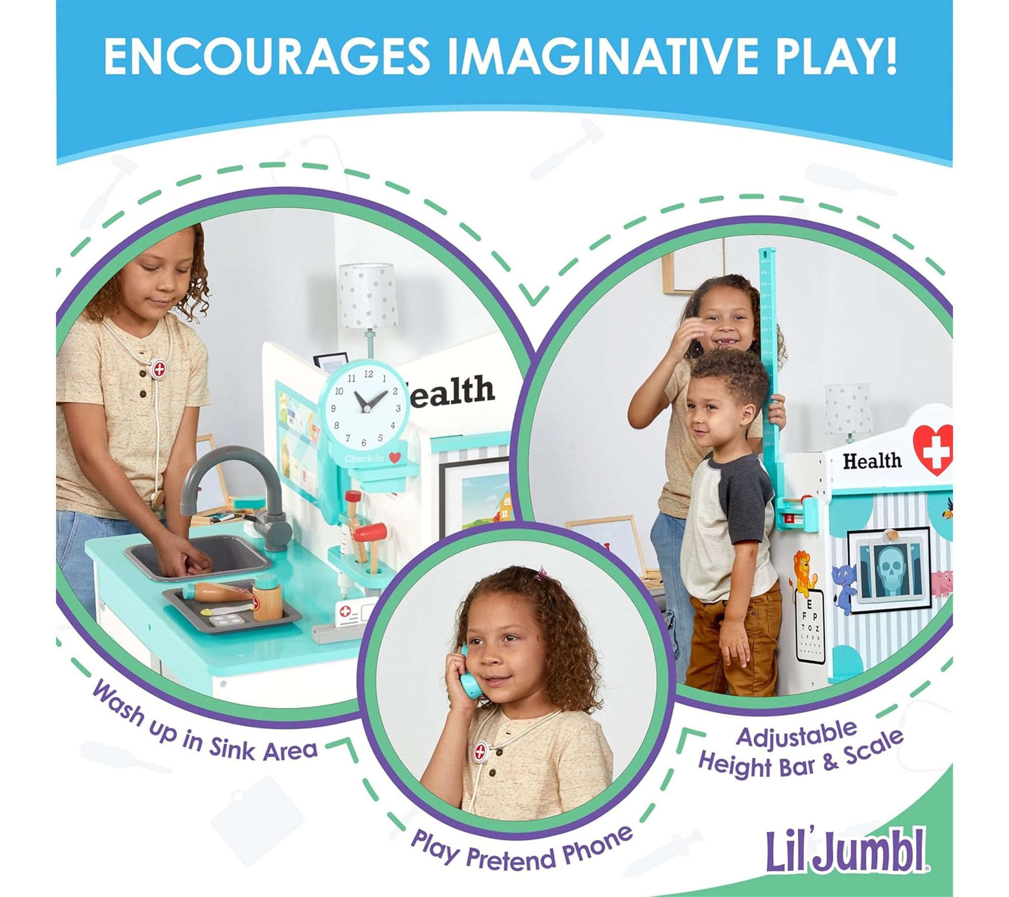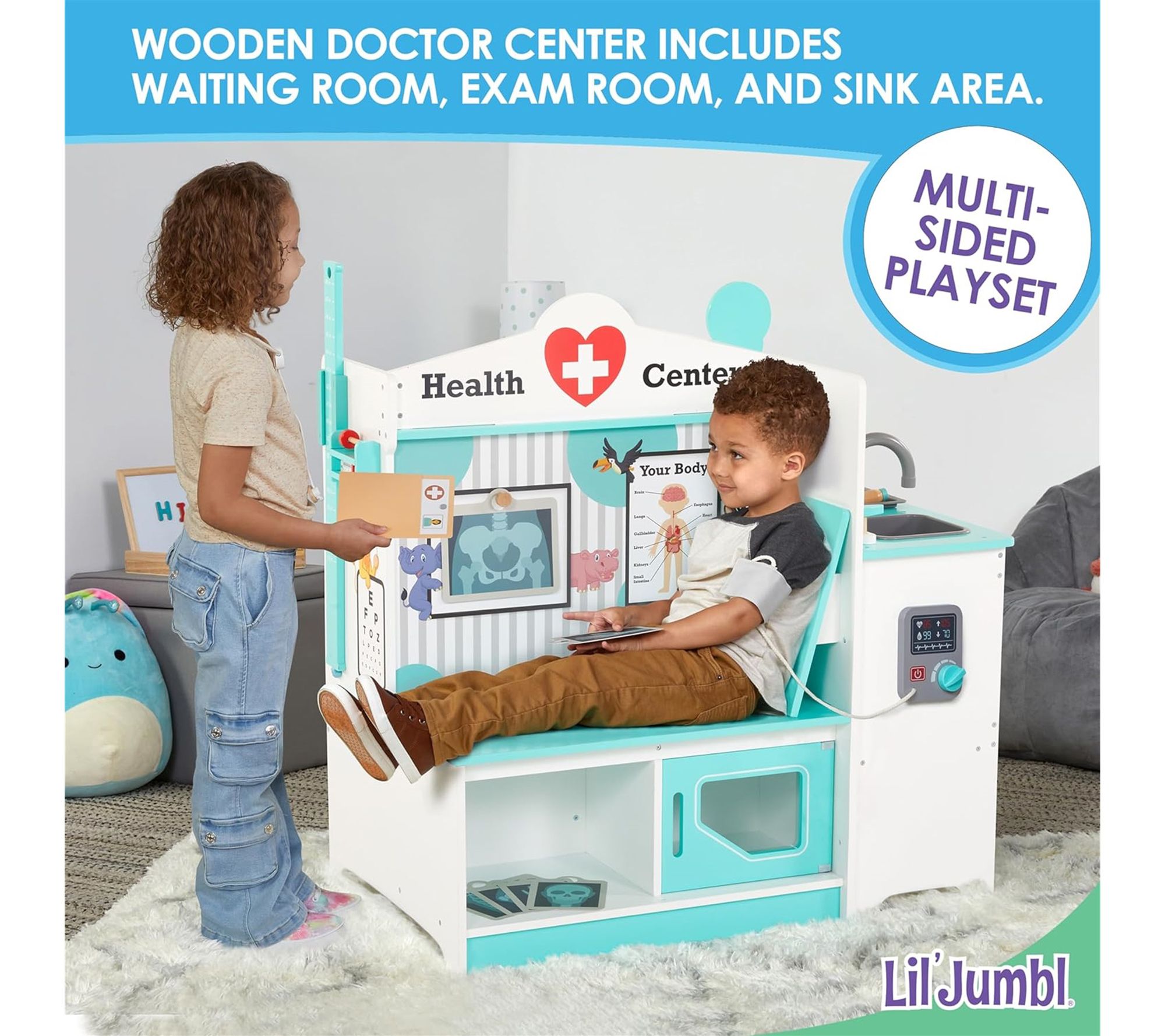 Lil' Jumbl Wooden Doctor Playset, Multi-Sided Medical Office