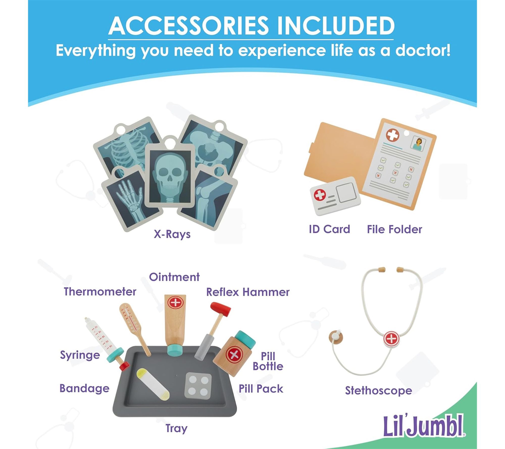 • Includes wooden doctor playset, 25 interactive accessories, complete hardware pack, and step-by-step assembly guide