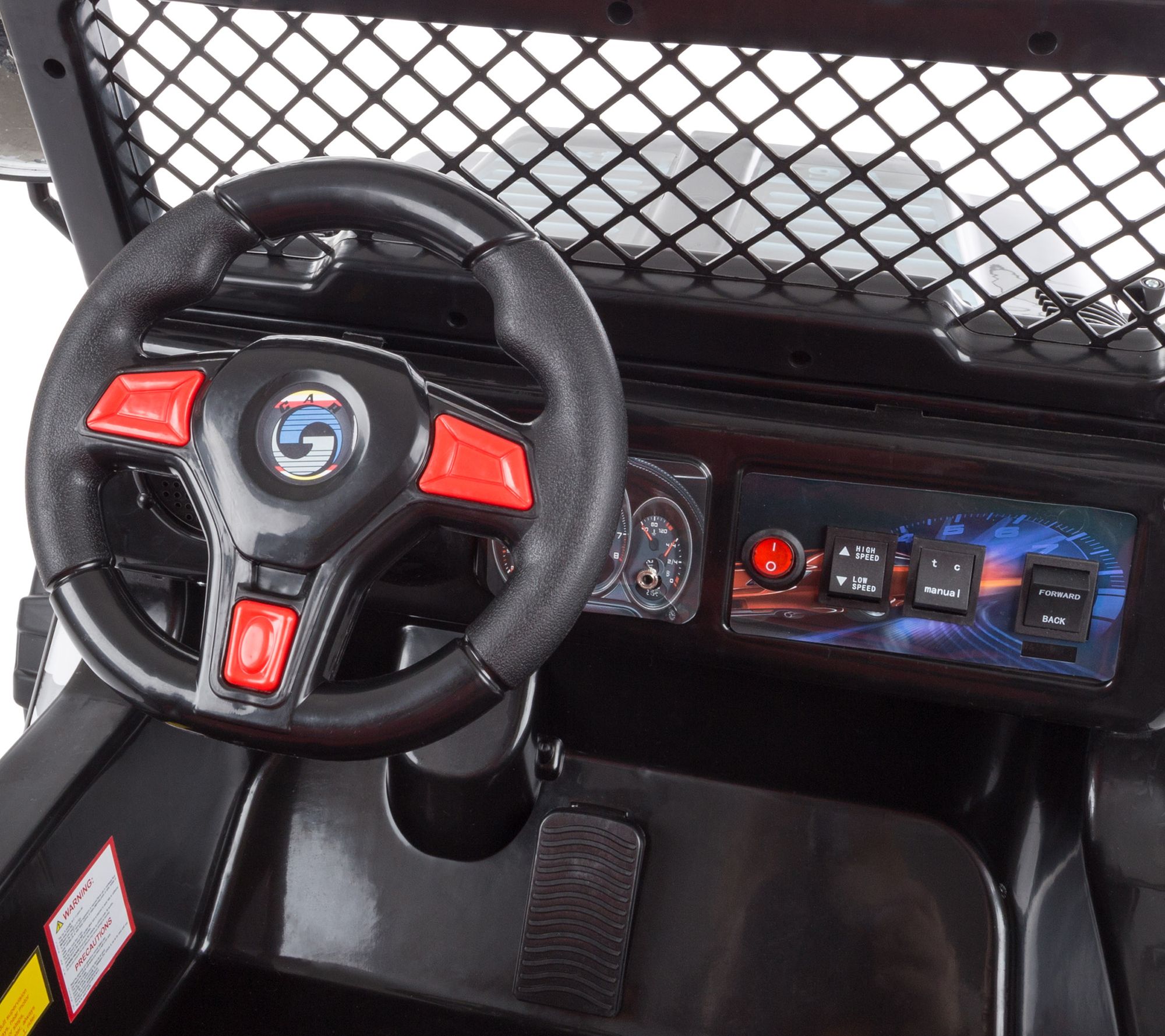 • Includes ride-on truck with seat belt, charger, and remote control