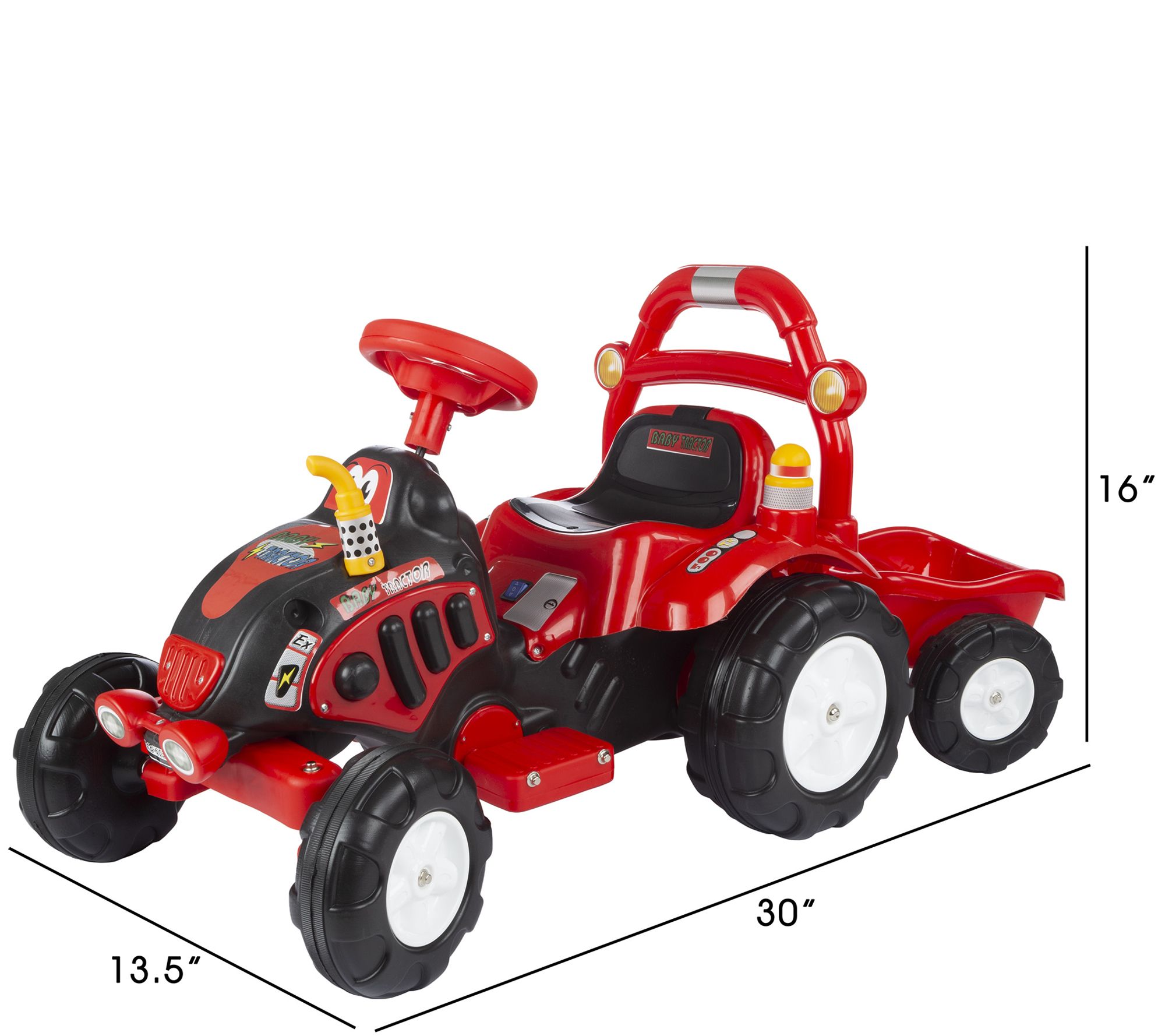 • Includes The King tractor ride-on, trailer, 6V rechargeable battery, and charger
