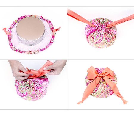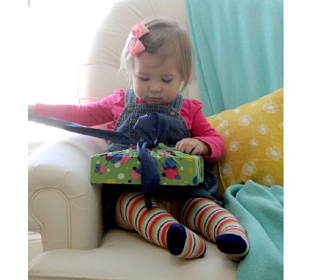Present perfect. Fitting snugly to a variety of shapes and sizes, this stretchy, reusable wrap is a versatile way to give gifts. Simply set the gift in the bag, cinch it shut, and tie it up using the built-in bow. No paper, tape, scissors, or trash!