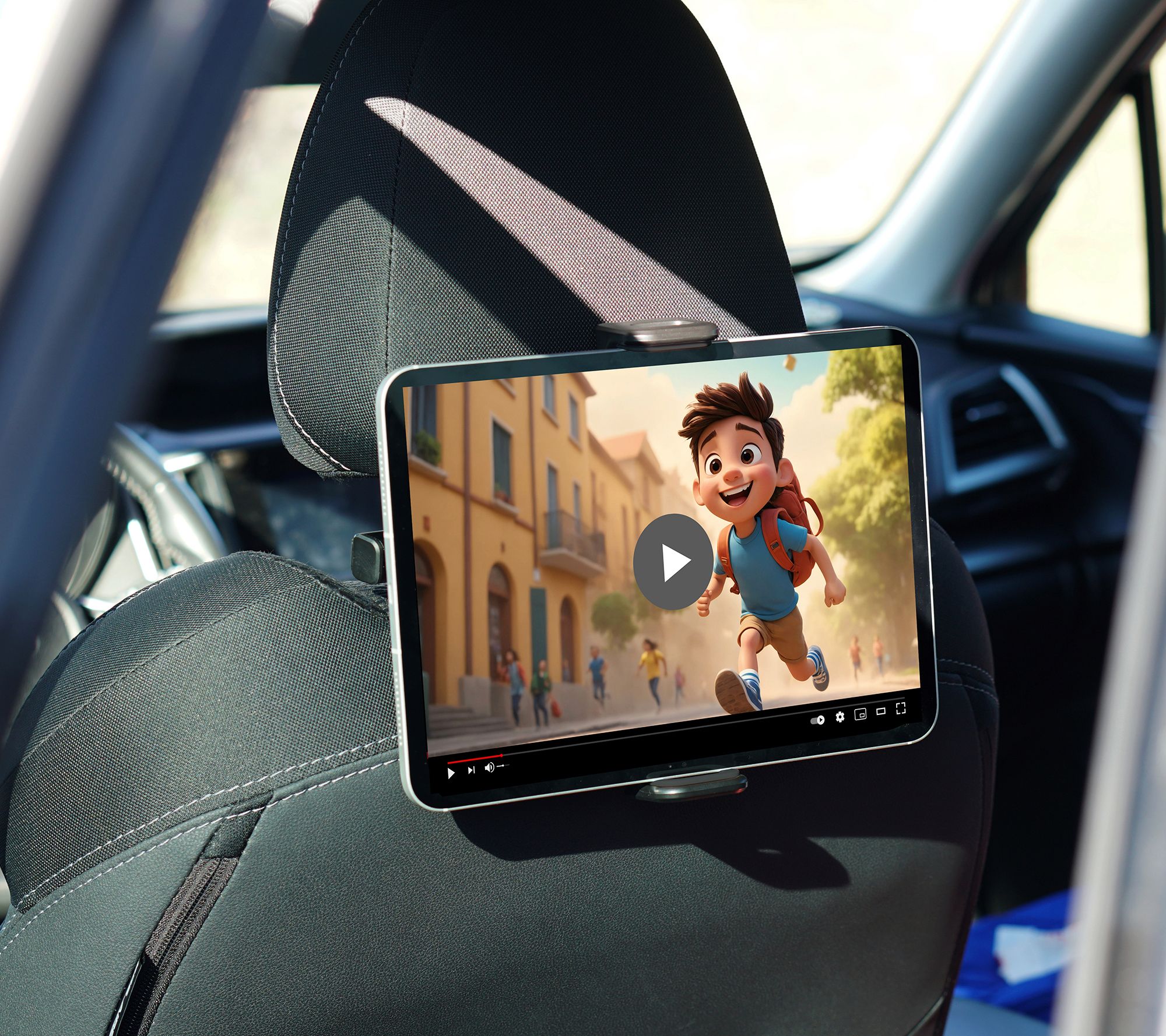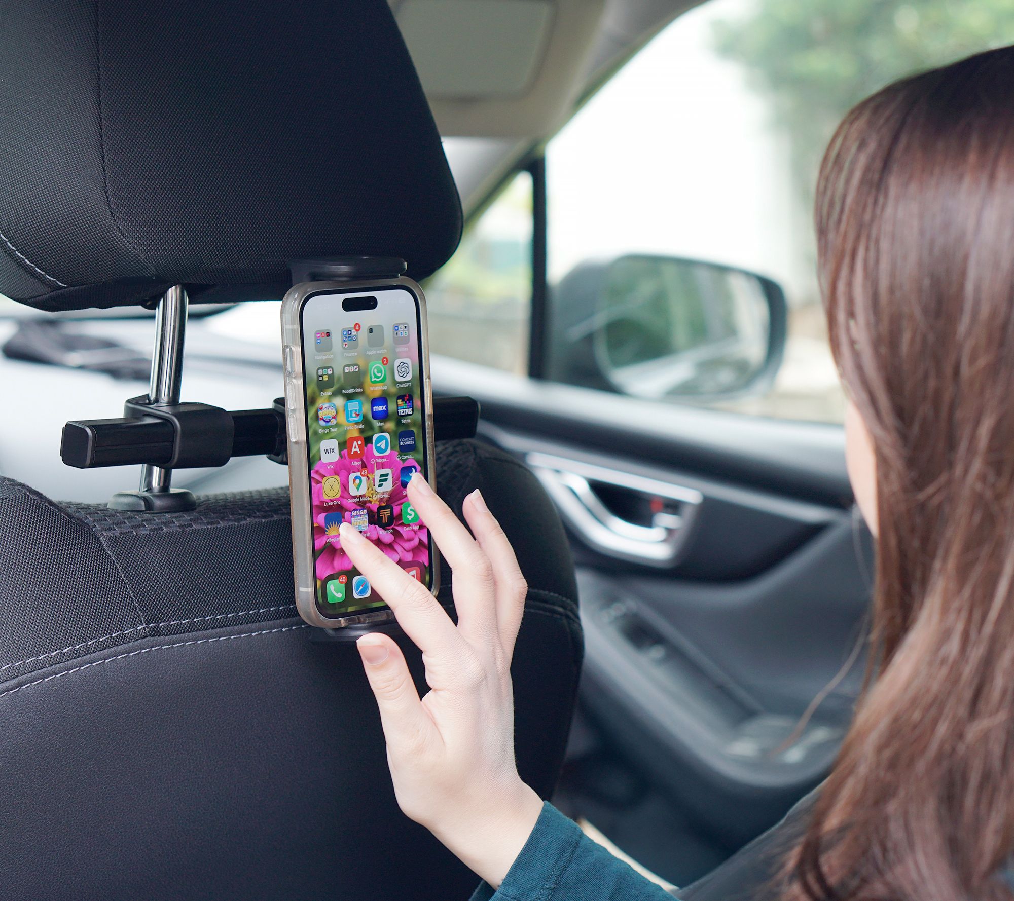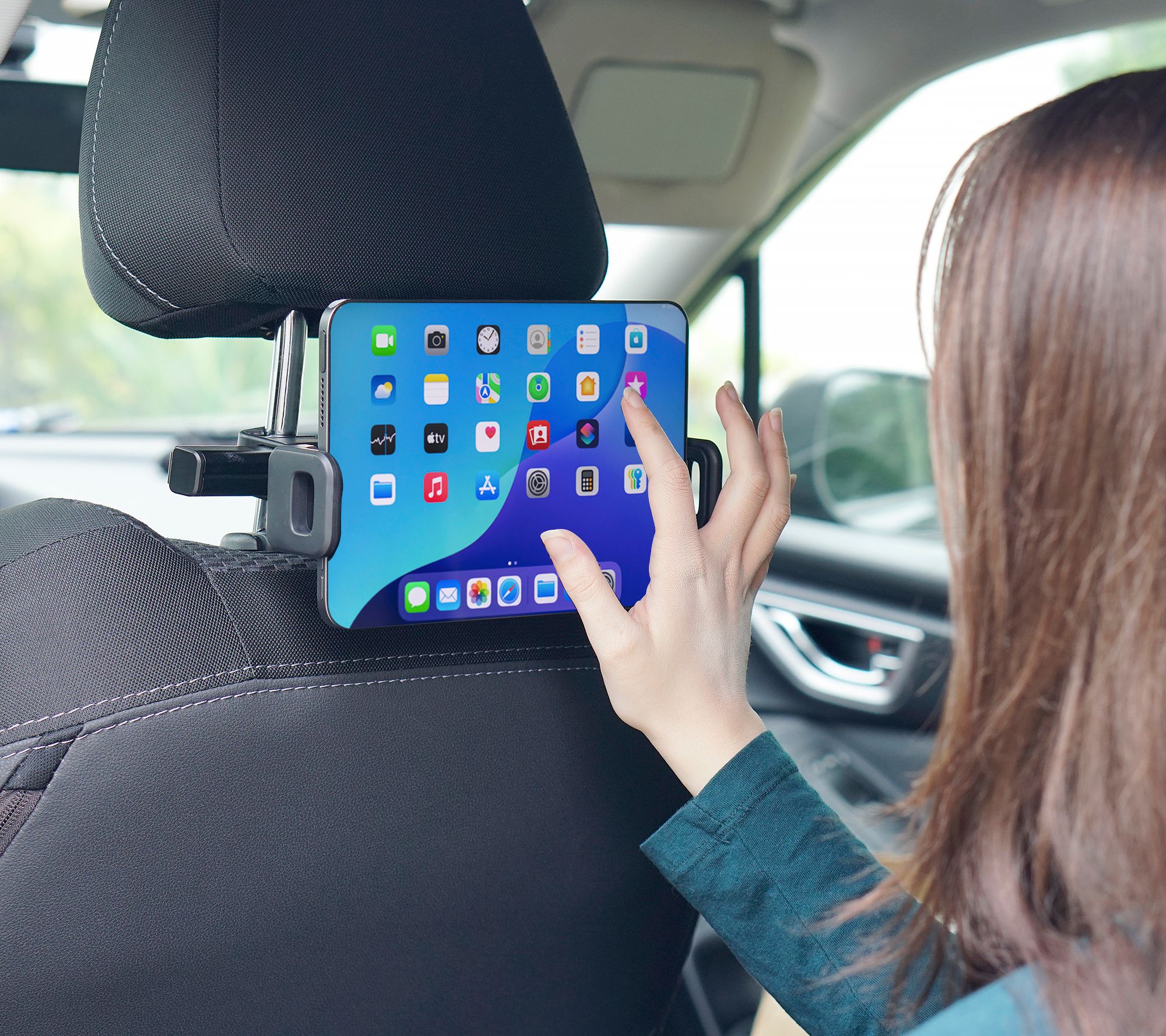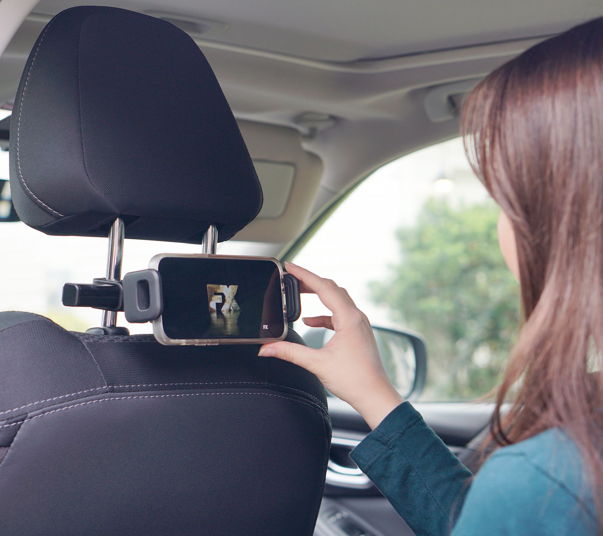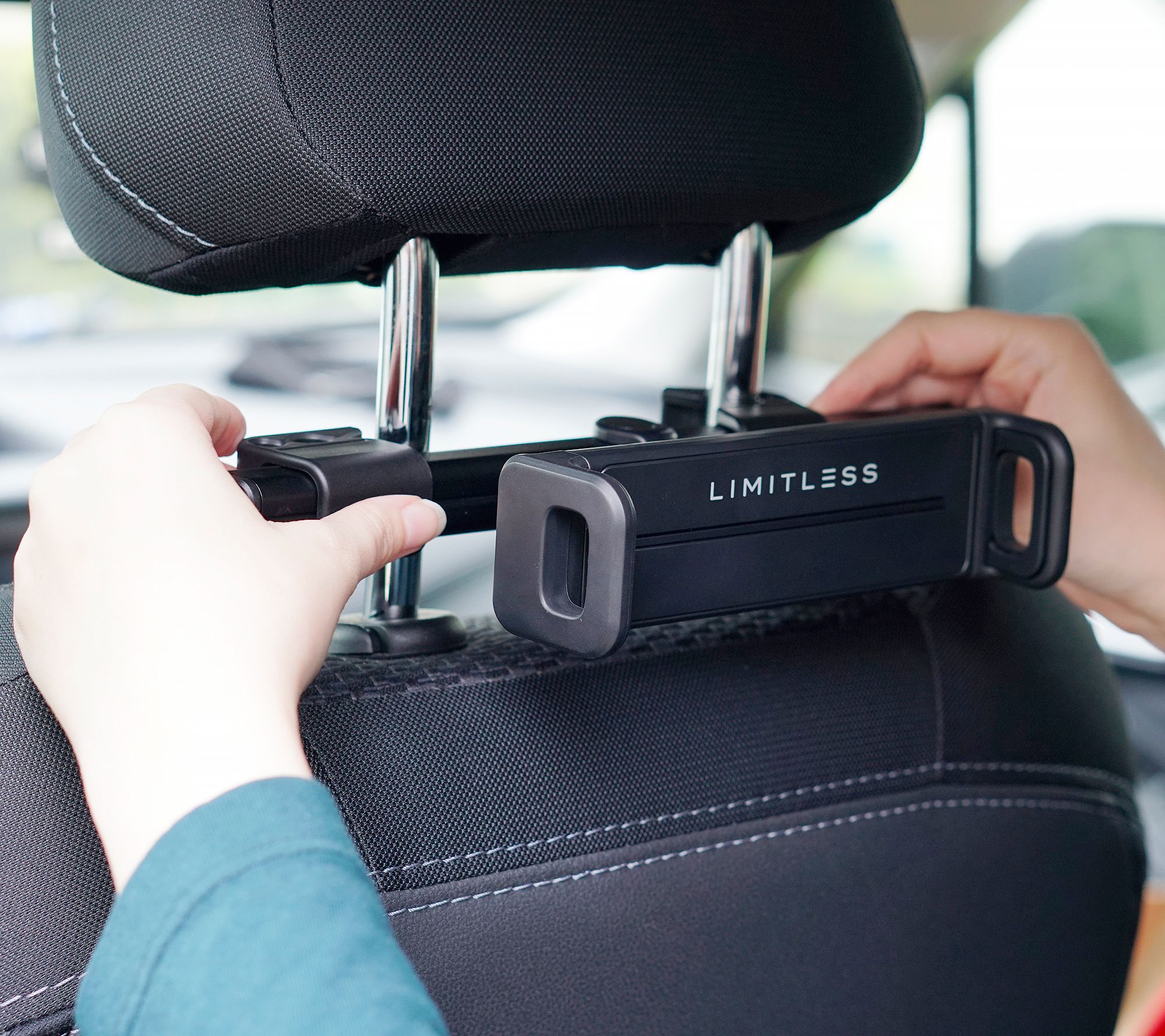 Make your long car rides enjoyable with this adjustable tablet mount. Read, play games, or watch movies hands-free with the adjustable clamp arm that holds most devices. The 360-degree rotation lets you use your device horizontally or vertically, while the thickened hooks ensure a firm grip. From Limitless.