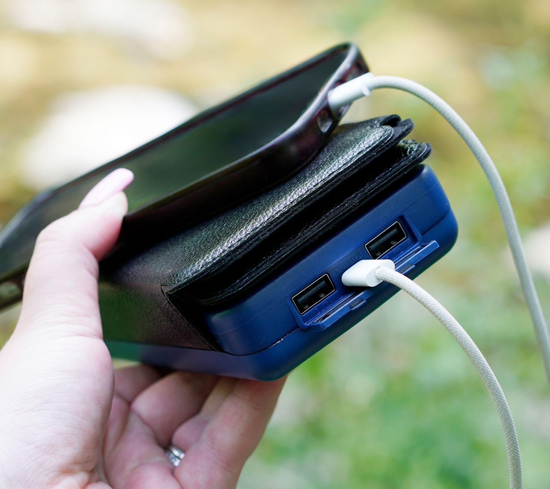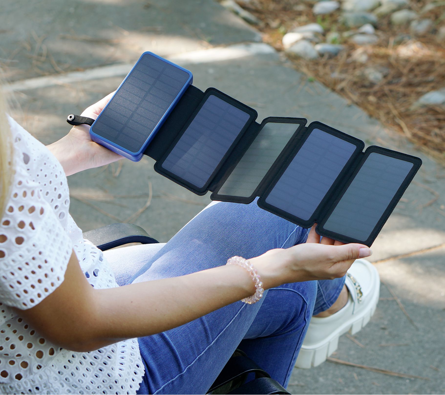 • Includes solar power bank with solar panel, plus four foldable solar panels and 36" USB to Type-C charge and sync cable