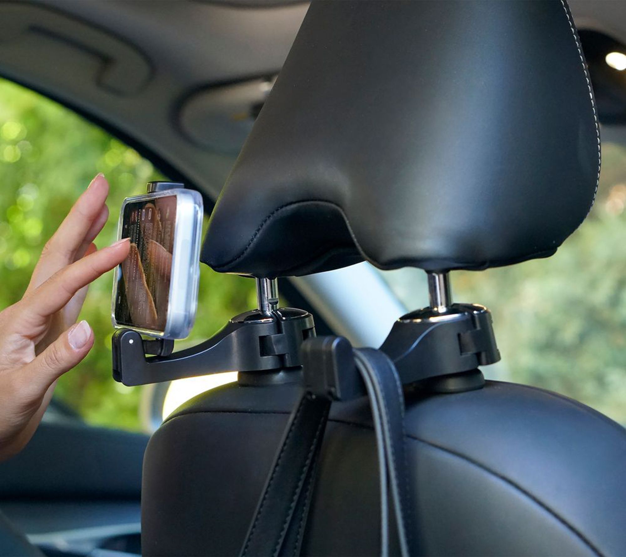 • Use as bag holder or phone stand for backseat viewing