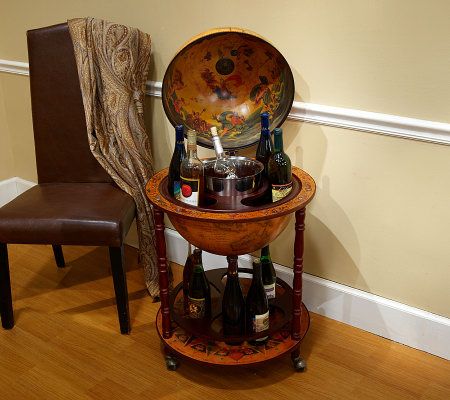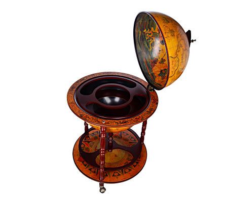 Ciao, bella! Welcome the glory of the Old World into your home with this gorgeous globe. The Old World Italian replica globe sits in a rich, wooden stand. While lovely on the outside, it even boasts some hidden charms. The globe itself opens to reveal a stain-resistant plastic organizer, which can hold glasses, bottles, and other entertaining accessories. From the Linda Dano Home Collection.