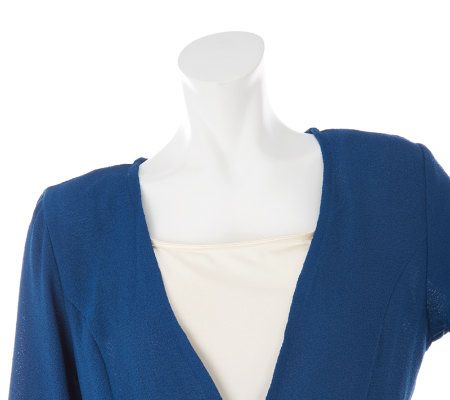 Anything goes. Boasting versatility, simplicity, and style in spades, this gauze jacket fastens with a single button. The hem reaches longer in the front, adding a modest touch that flatters any figure. From Linea by Louis Dell'Olio.