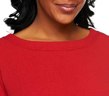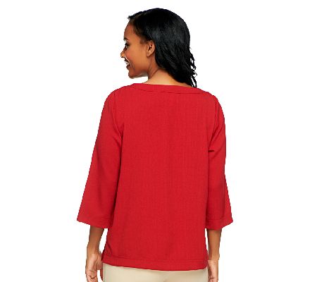 Casual comfort. Slip this pebble-crepe tunic on for wearable ease. Two slits at the bottom hem keep the fit relaxed. From Linea by Louis Dell'Olio.