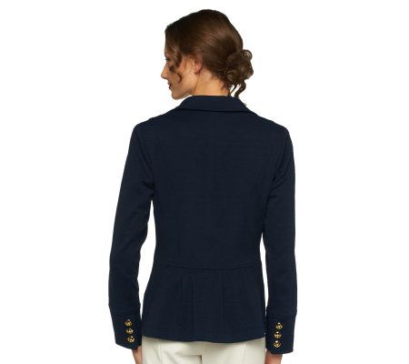 An all-around classic. Turn heads coming and going in this elegant, ultra-wearable ponte blazer from Linea by Louis Dell'Olio. Fresh and sophisticated, it marries the timeless style this awarding-winning designer is known for with a modified back peplum detail that's right on trend. You'll wear it everywhere!
