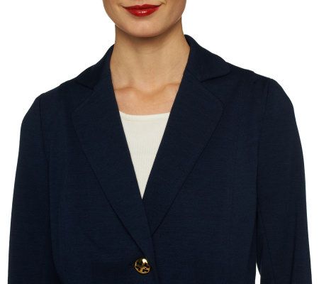 Incredibly easygoing. Looking polished won't come at the sacrifice of your comfort in this blazer. Ponte fabric adds just the right amount of structure and offers stretch recovery, so the design holds its shape. And while the front of the blazer features beautiful satin lining, the lining-free back and sleeves allow you to move more easily.