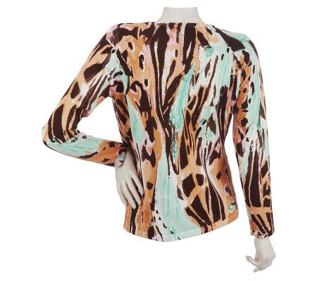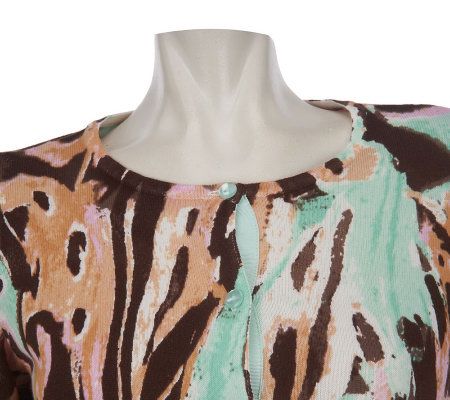 Splash your ensemble with high style. This cardigan punches up any ensemble with a posh allover print. From Linea by Louis Dell'Olio.