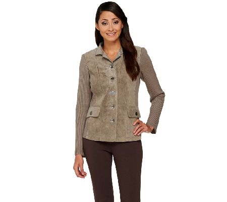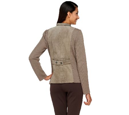 The best of both worlds. Chic suede and cozy knit join forces to give this Linea by Louis Dell'Olio jacket its distinctive style. Its solid colorway ensures a sophisticated look. From Linea by Louis Dell'Olio.