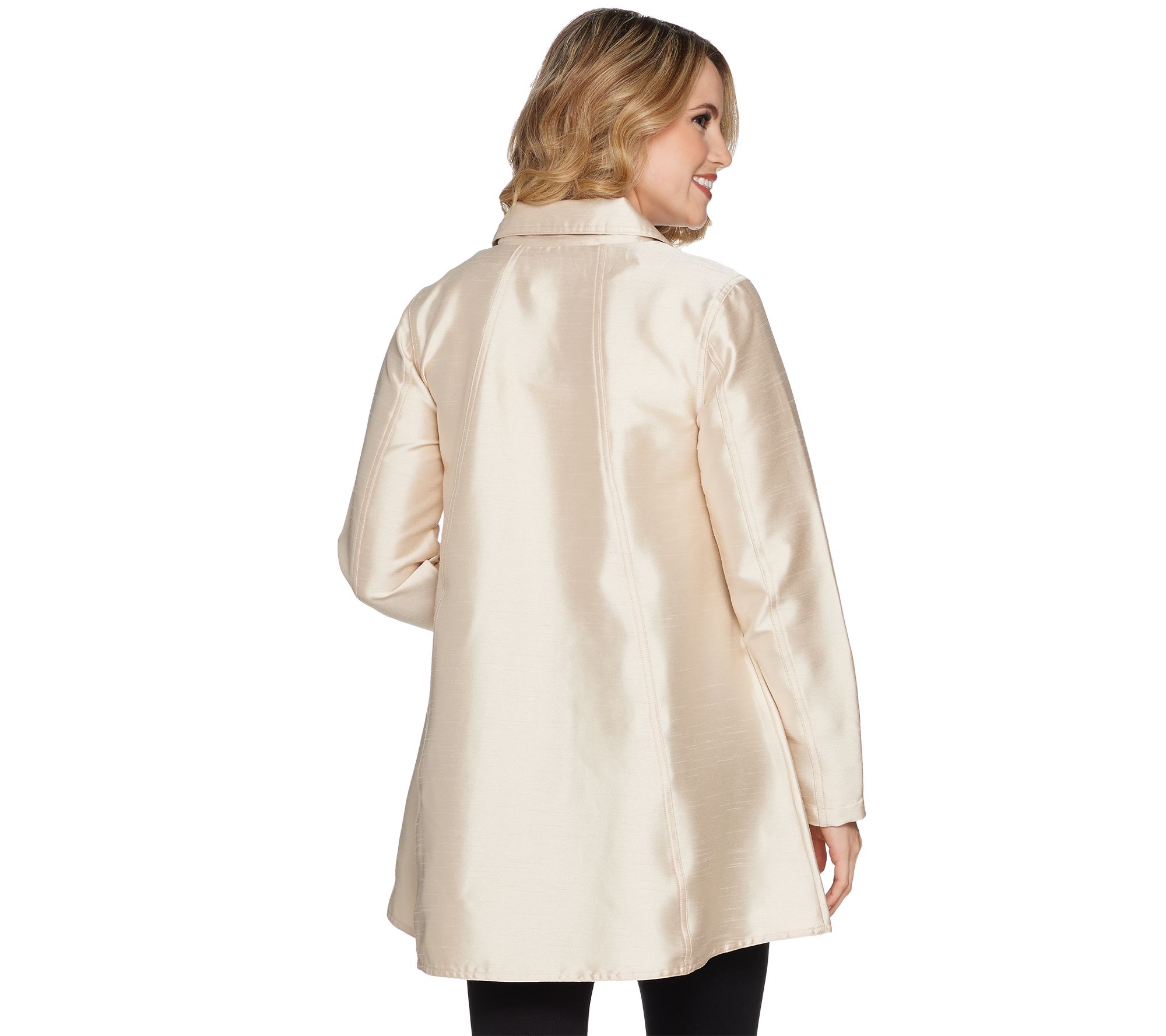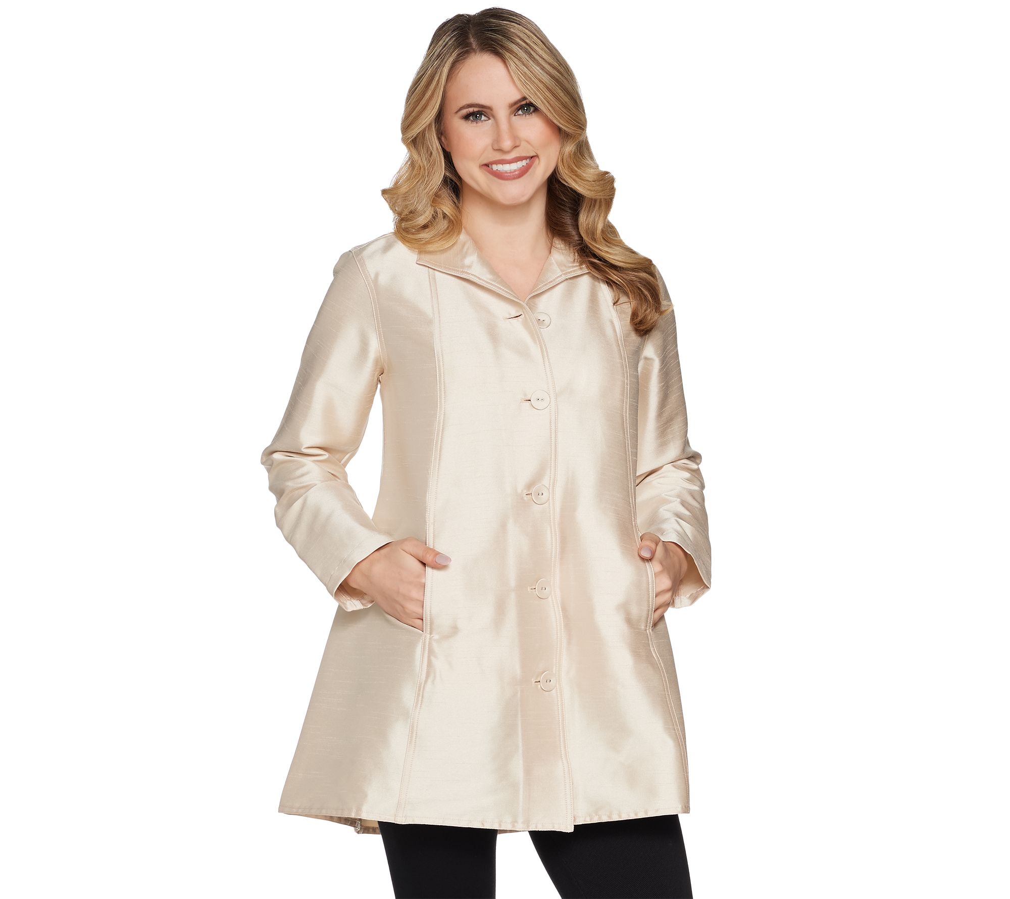 When you need a stylish way to top off your outfit, don't just wing it--swing it with this woven, button-front coat. From Linea by Louis Dell'Olio.