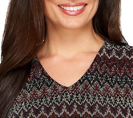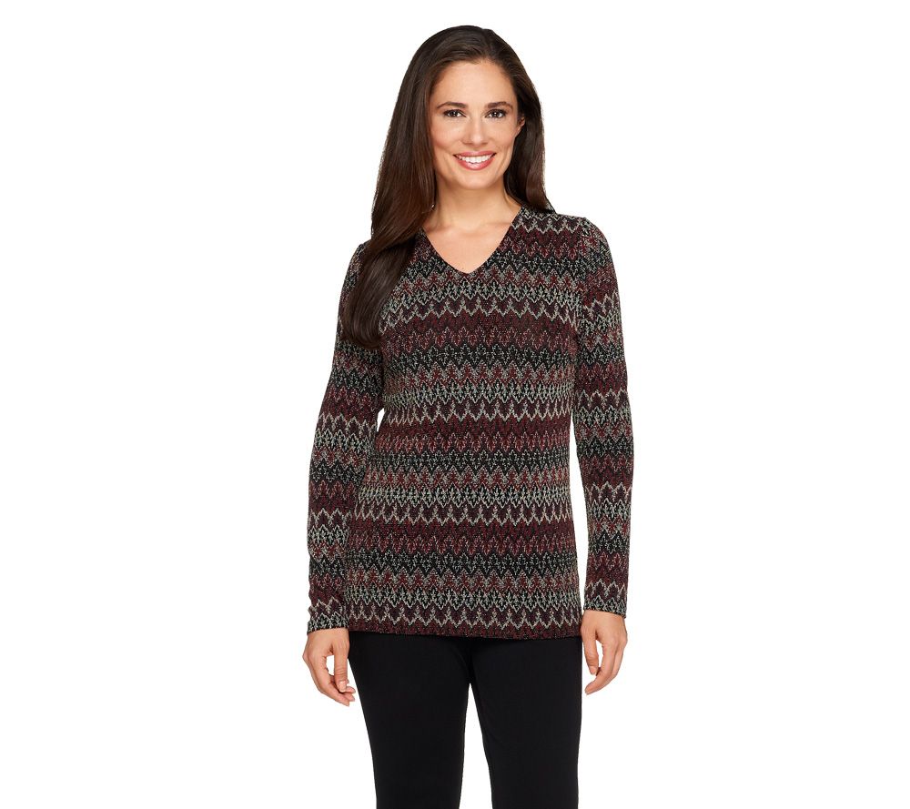 A design that shines. This Linea by Louis Dell'Olio pullover top features a V-neckline and a glitzy glitter print that sparkles with style. From Linea by Louis Dell'Olio.