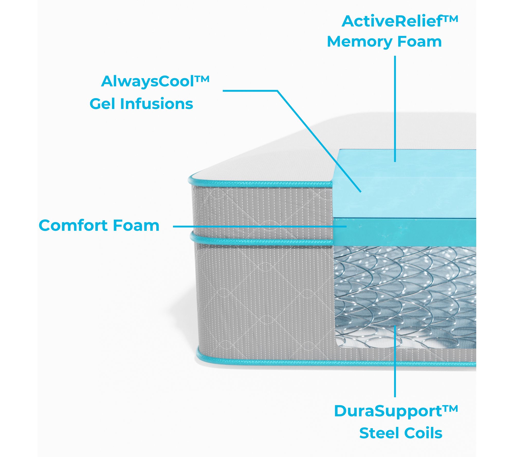 • 0.4" ActiveRelief memory foam and 1" polyurethane foam layer quilted into cover