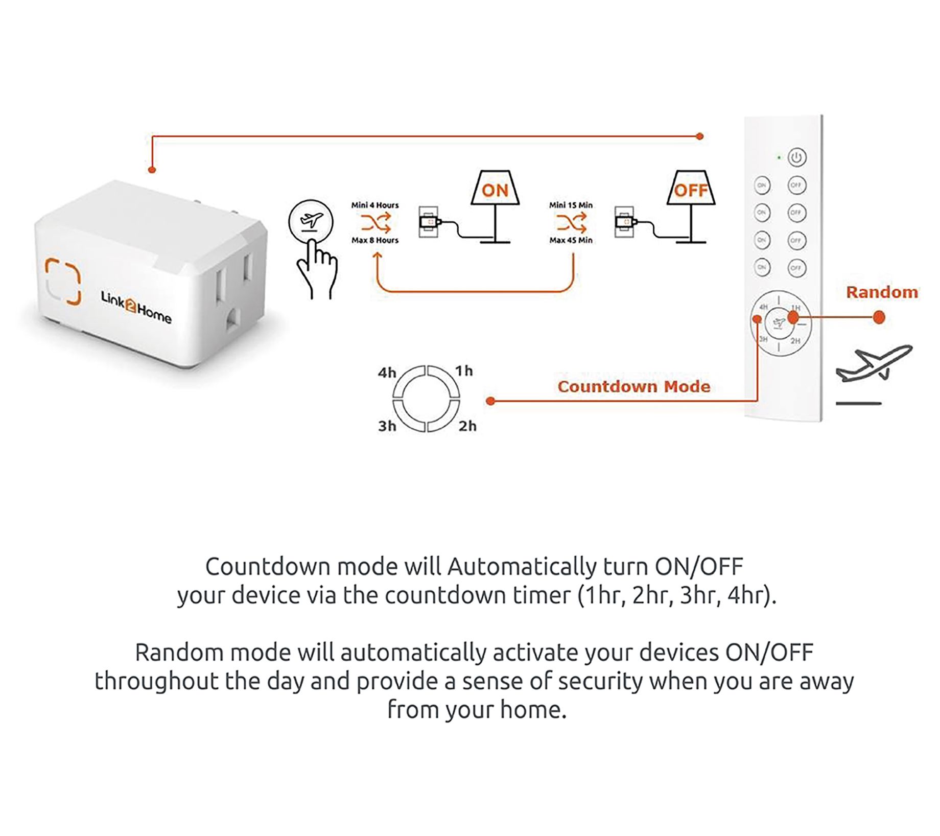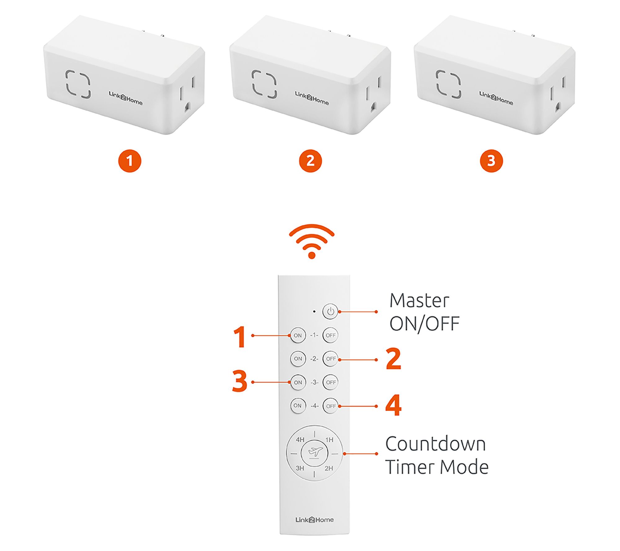 Link2Home 3 Wireless Indoor Outlet Switches w/Timer & Remote