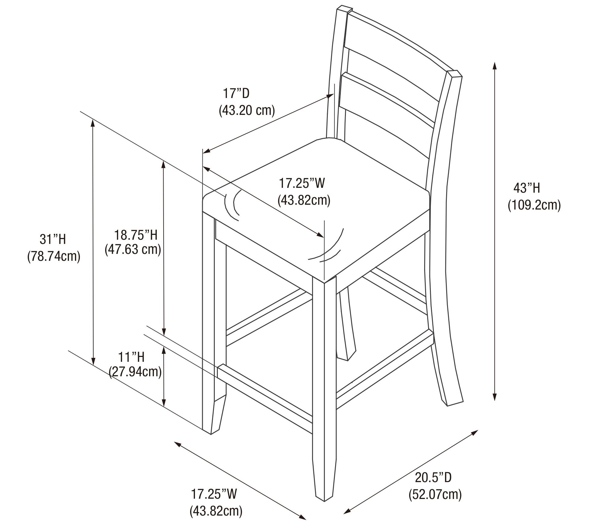 • Measures 17.25"W x 20.5"D x 43"H; supports up to 275 lbs