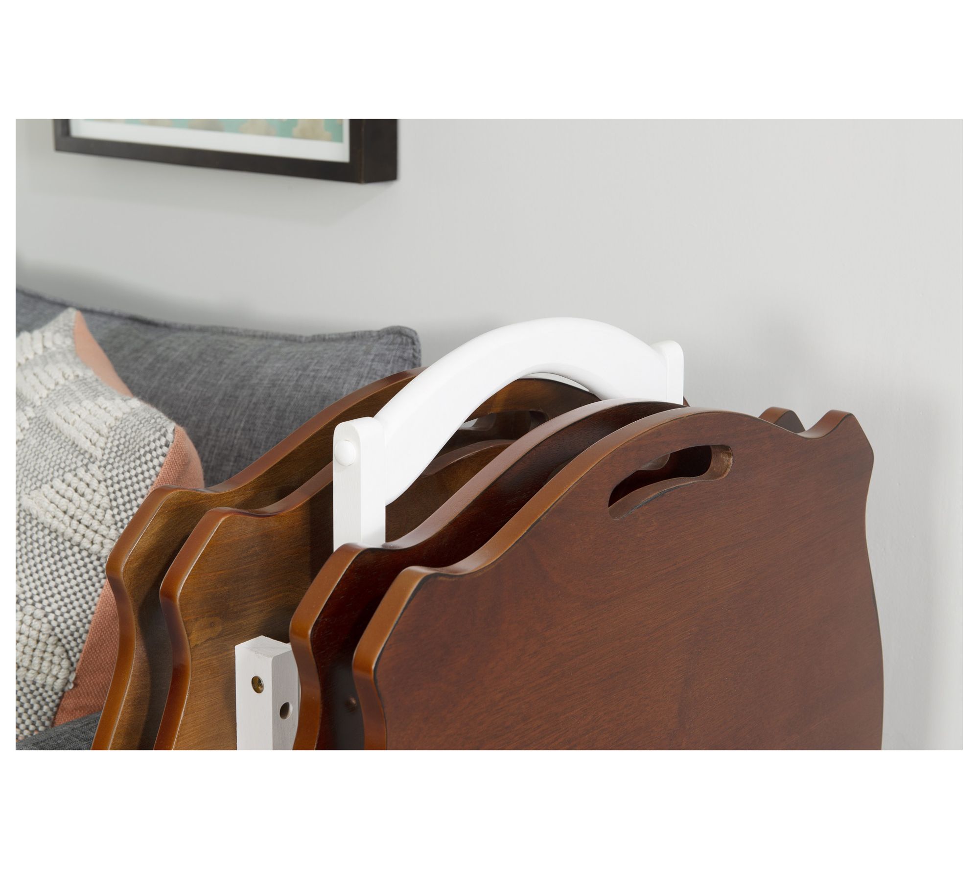 Lend versatile functionality to your home with this sturdy set of tray tables featuring a convenient caddy for effortless organization and neat storage. From Linon Home Decor.