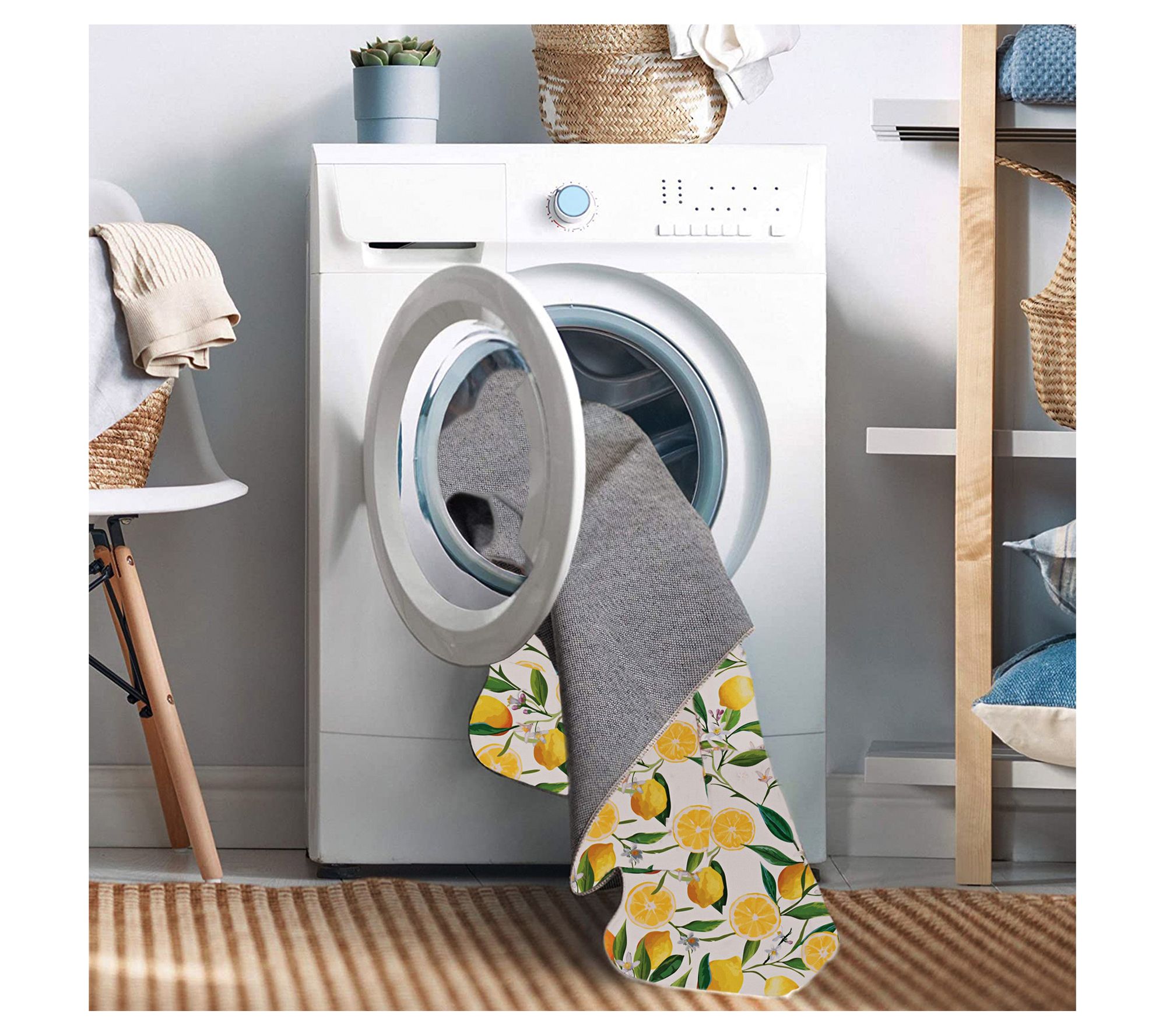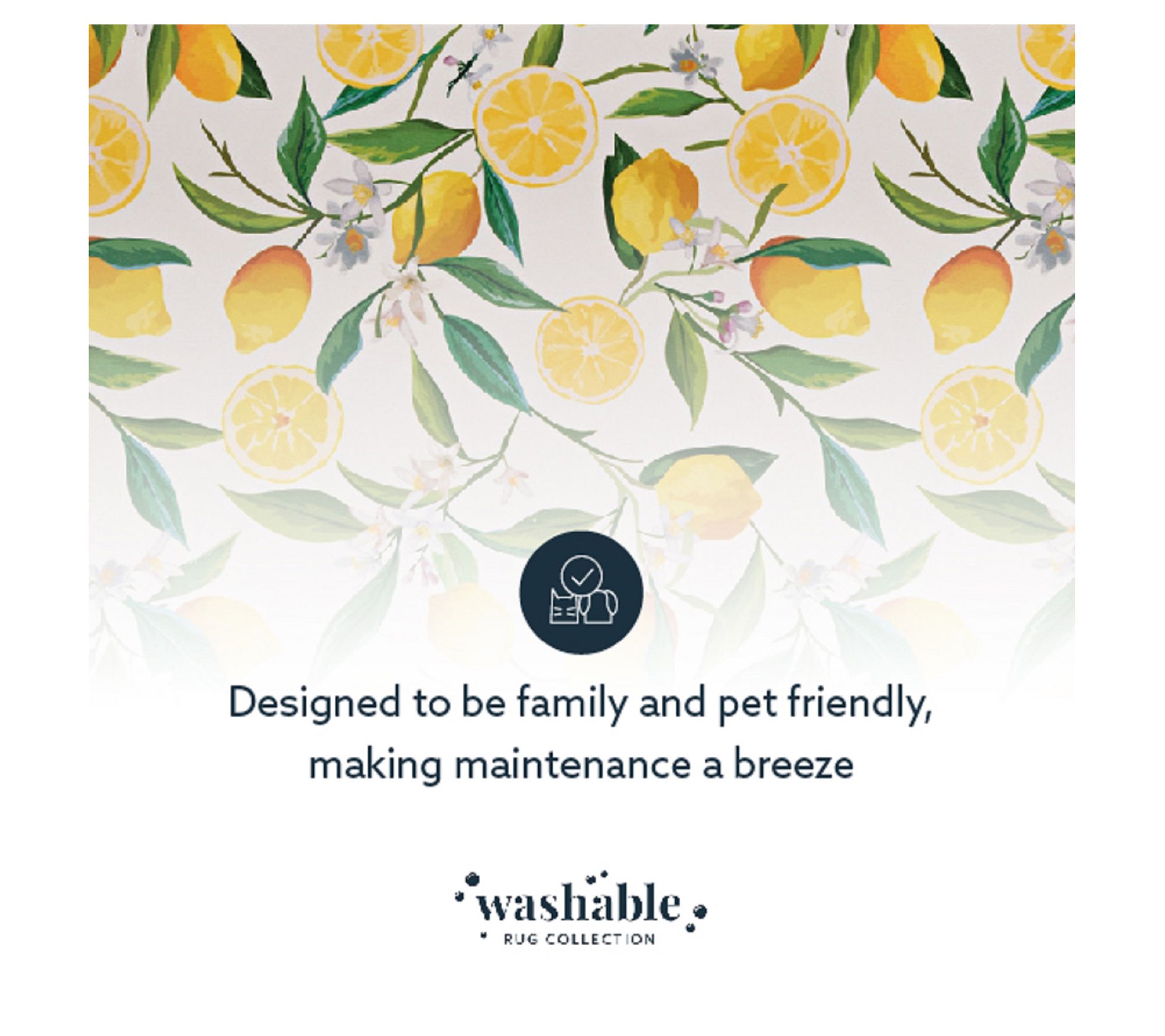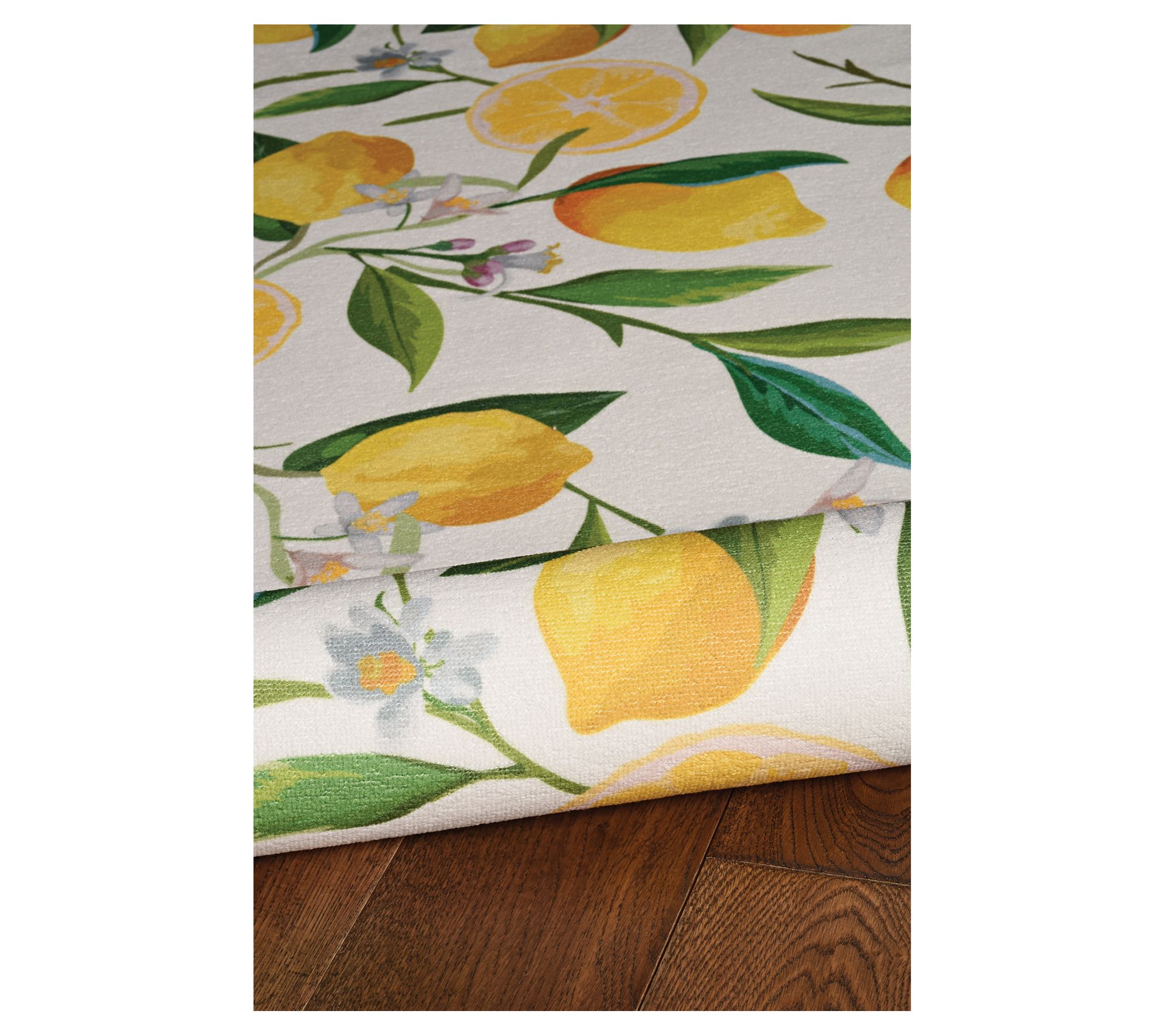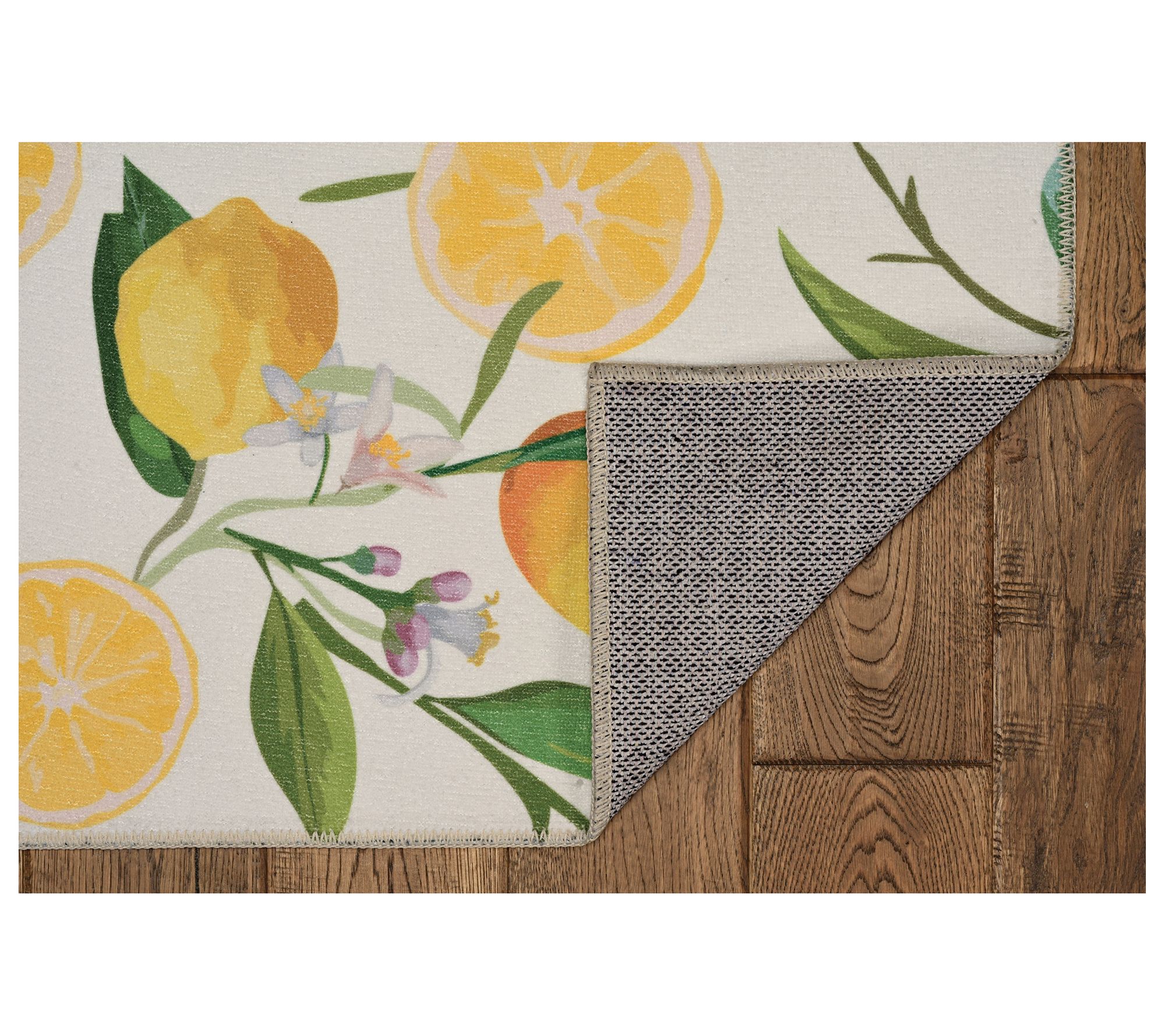 Bring a fresh squeeze of style into your home with the Carly rug, showcasing bright yellow lemons and lush green foliage, all on an ivory background. Plus, the washable design makes it perfect for homes with active pets and kids. From Linon Home.